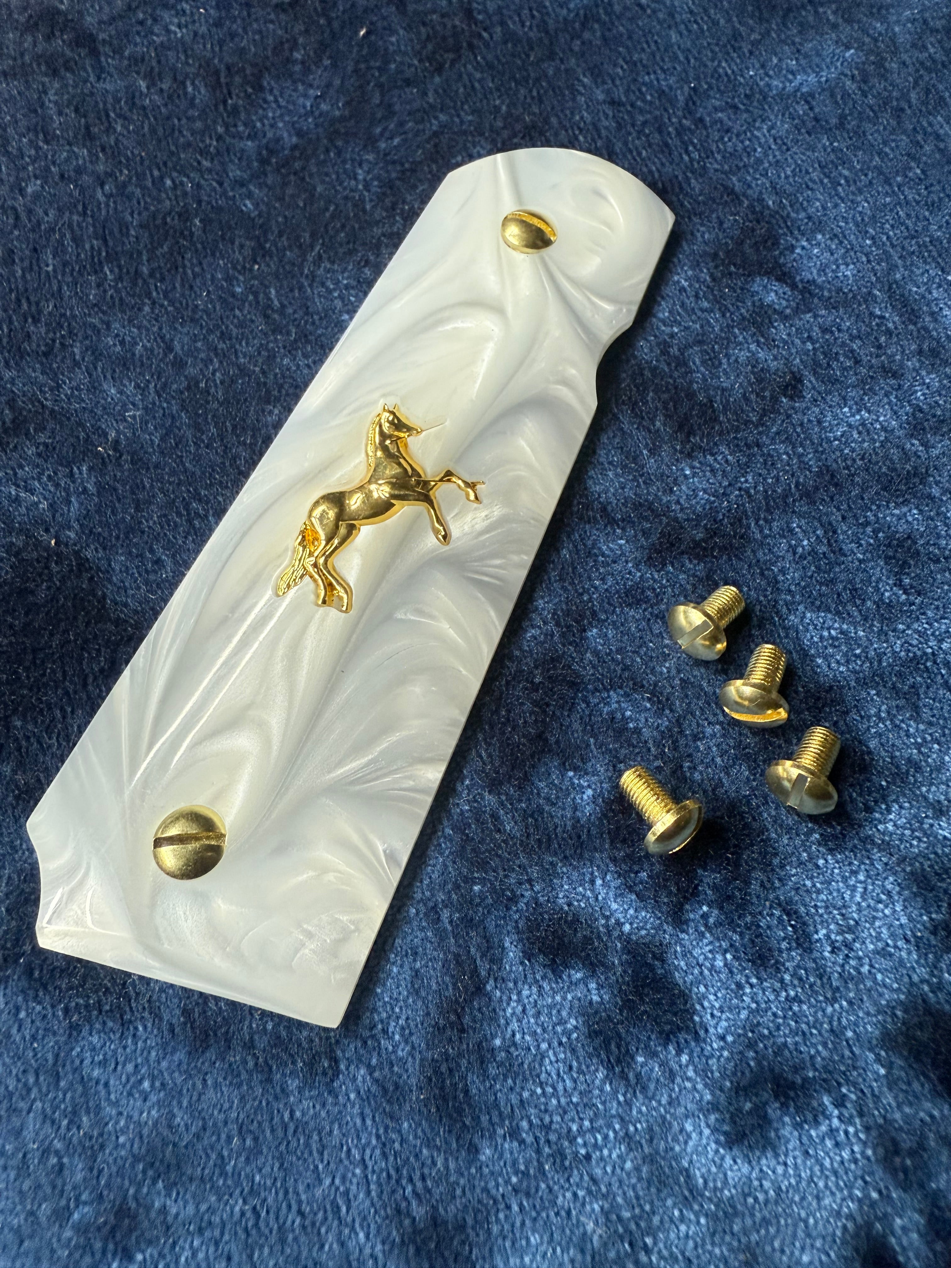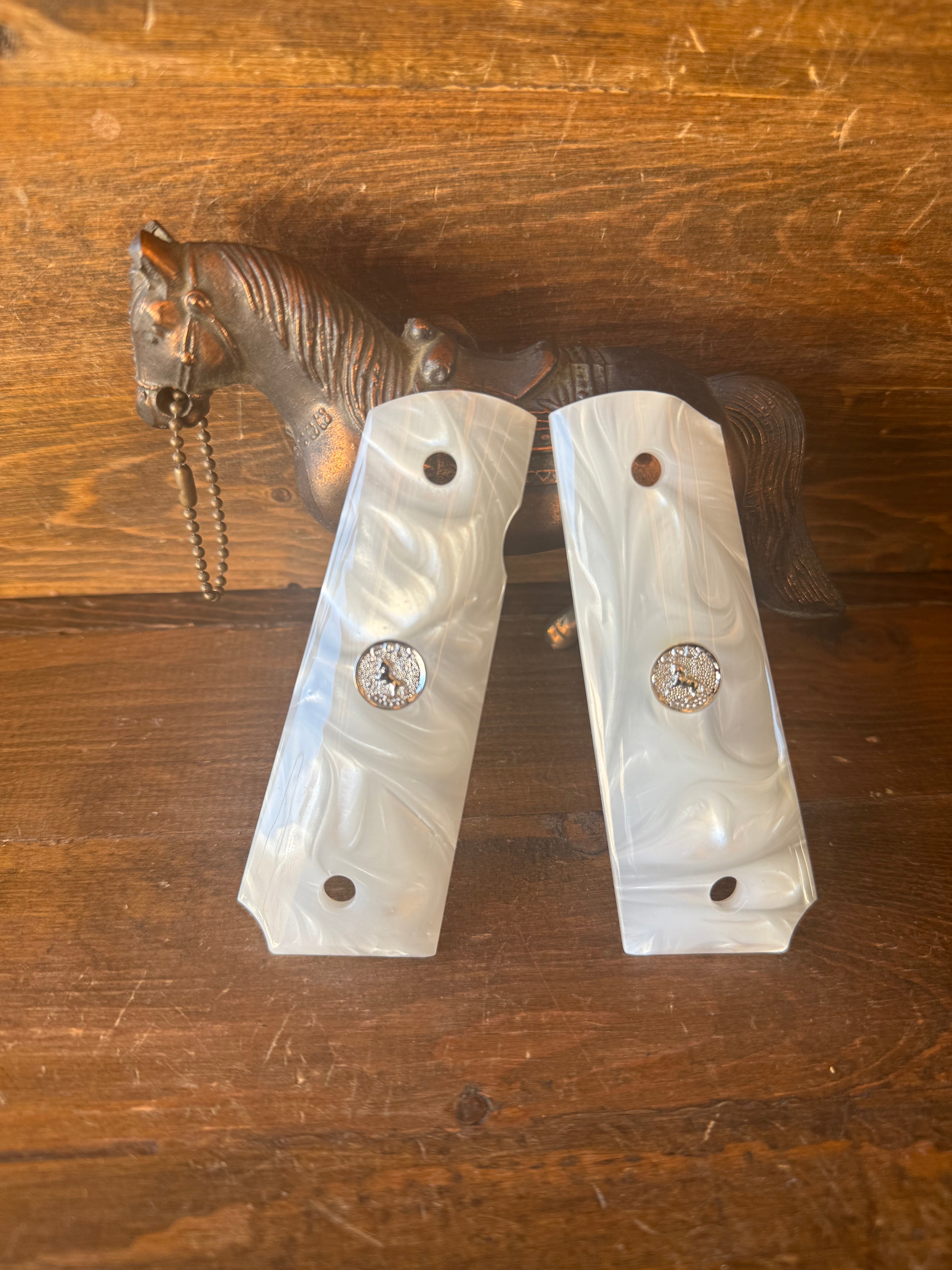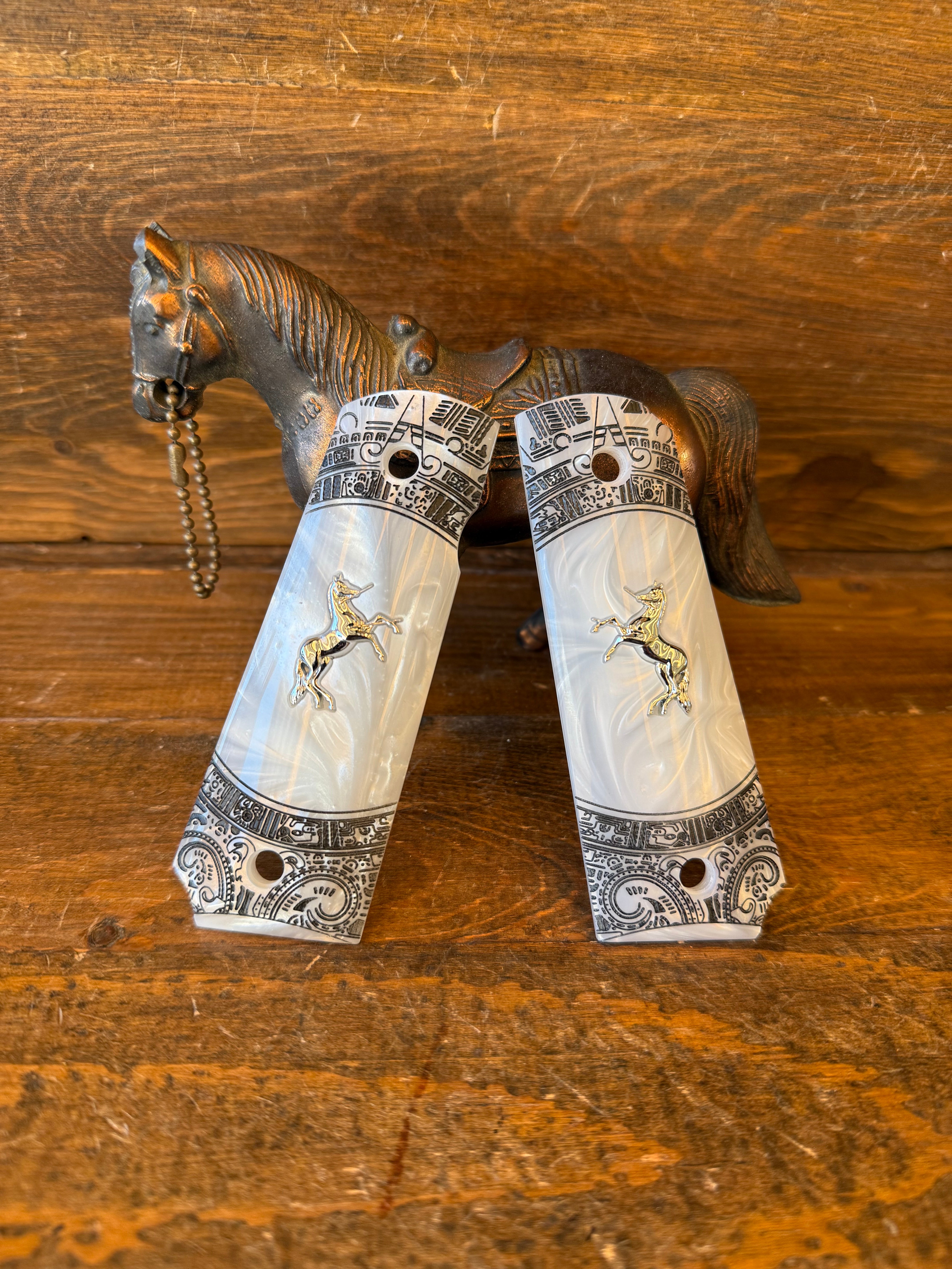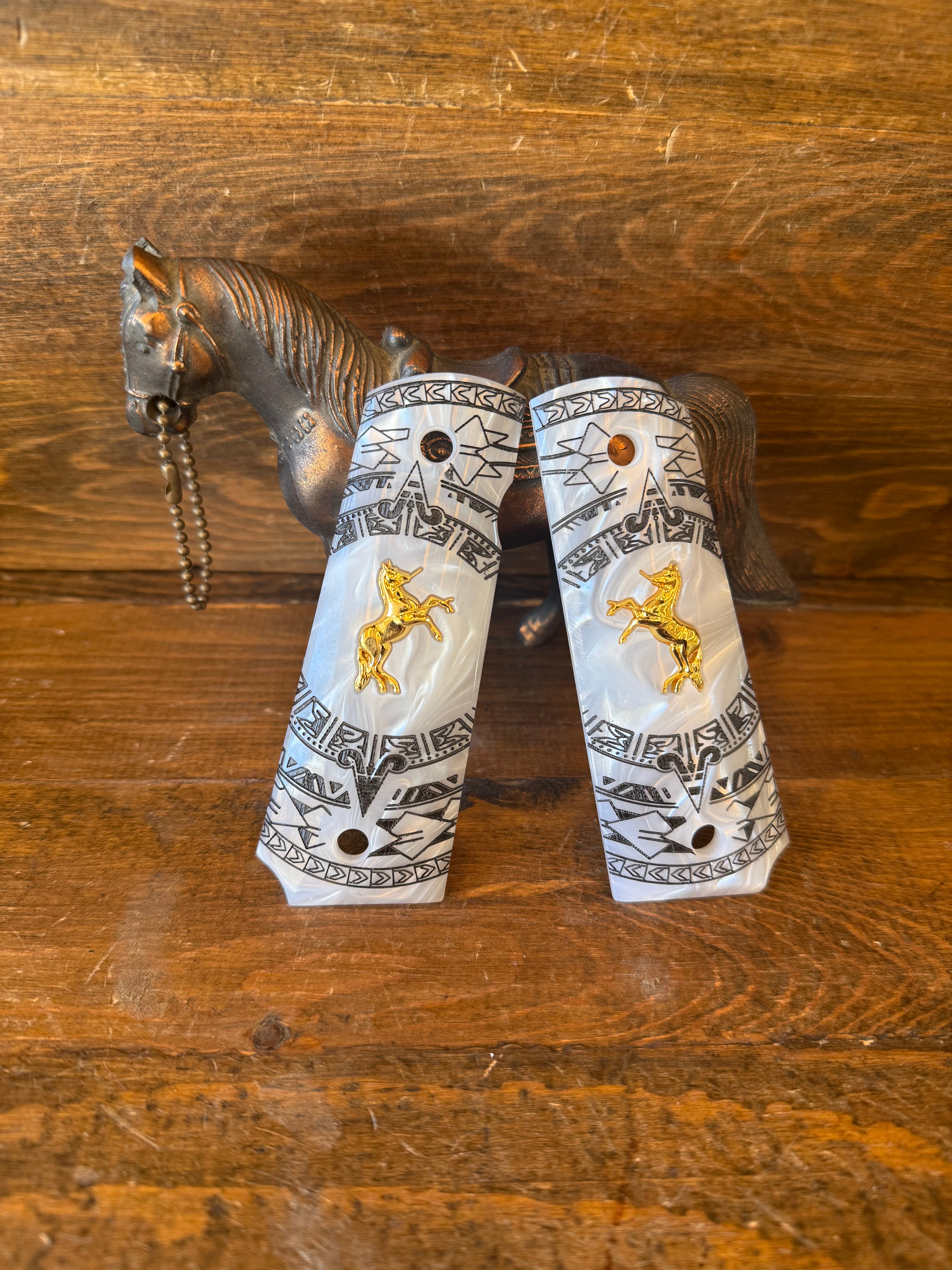 Pearl White Aztec /gold horse grips (1911)$34.00 USD