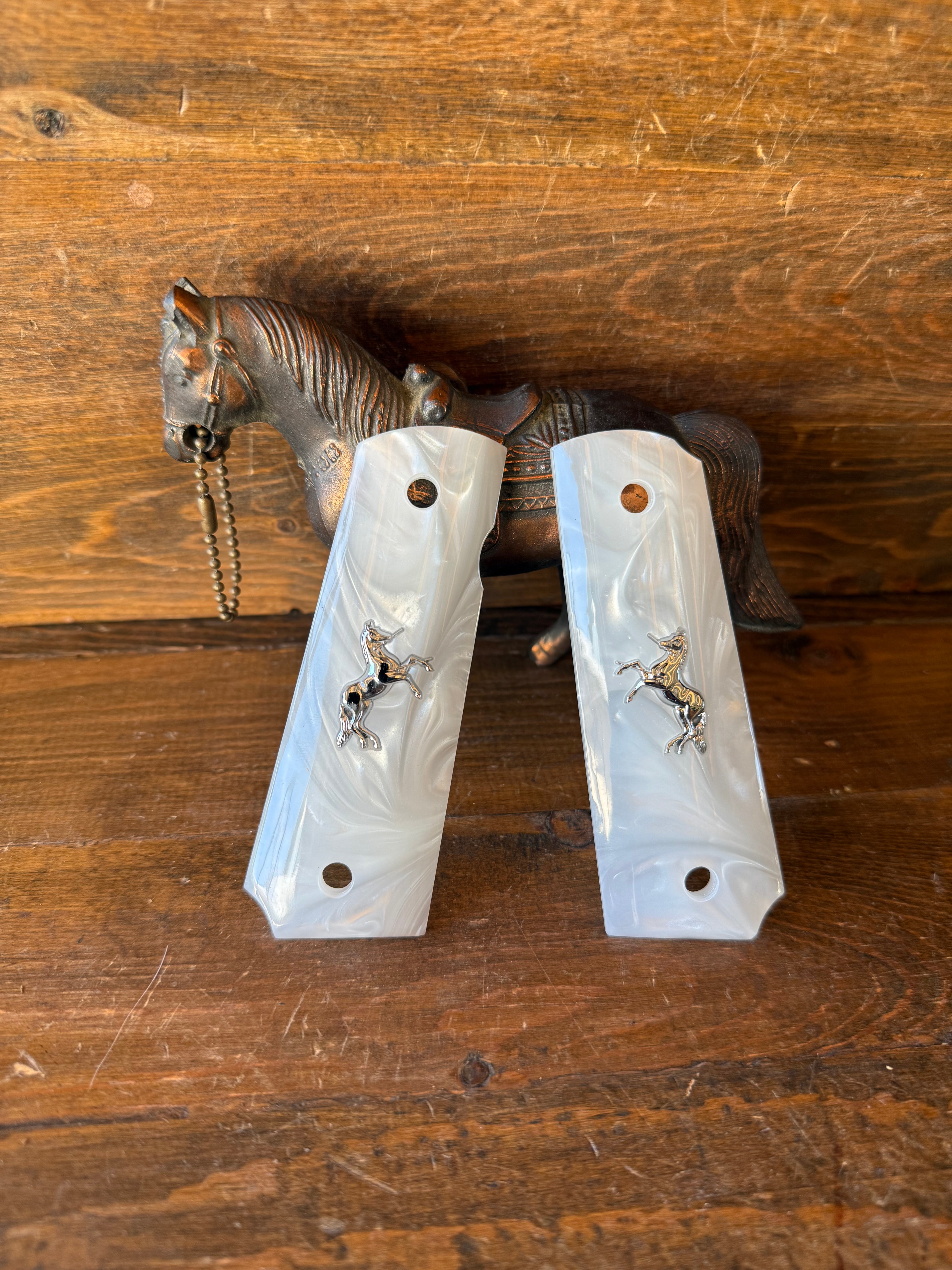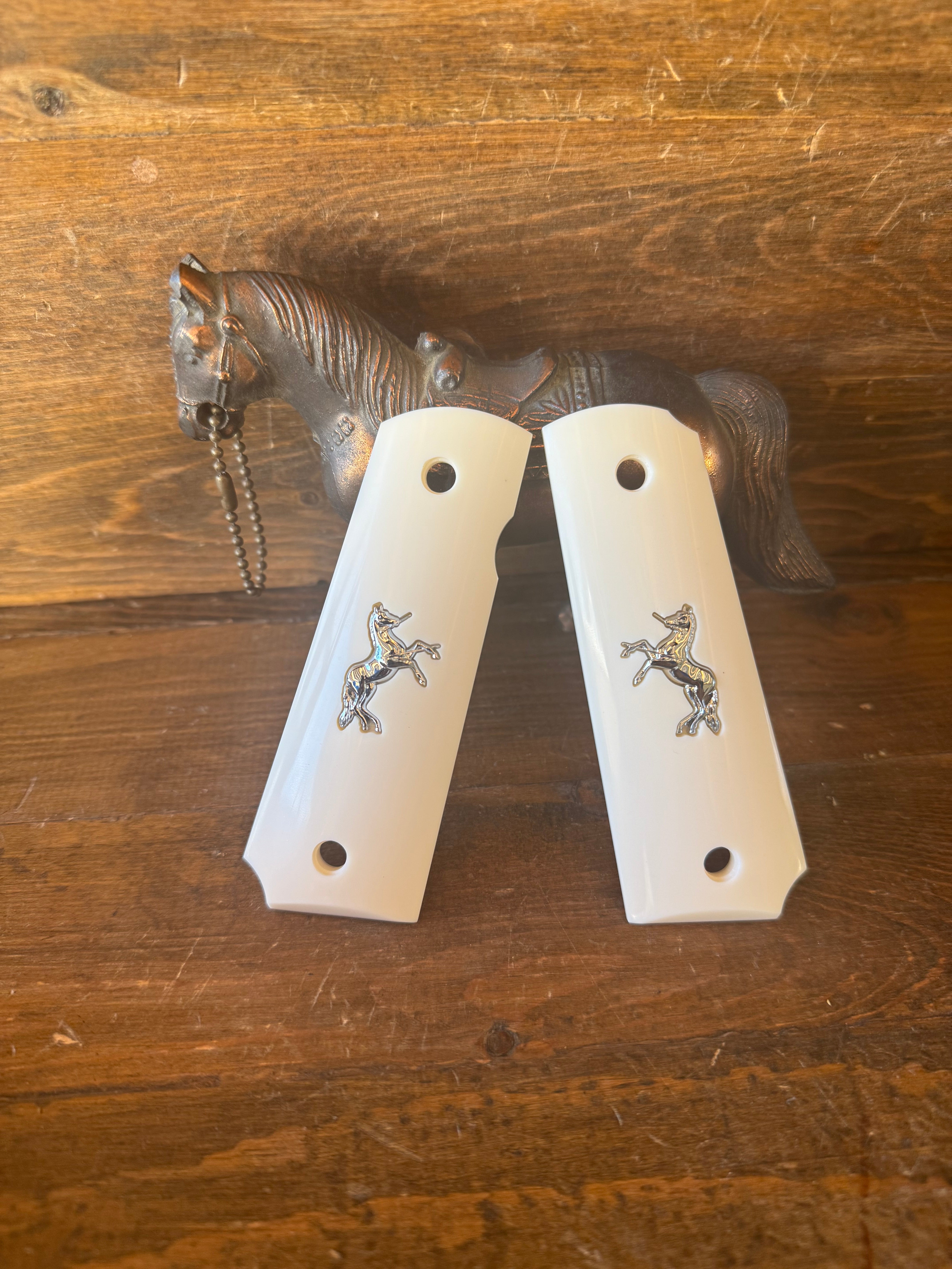 Bonded ivory / silver horse grips (1911)$34.00 USD