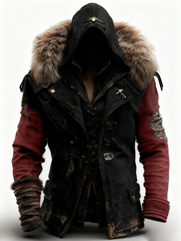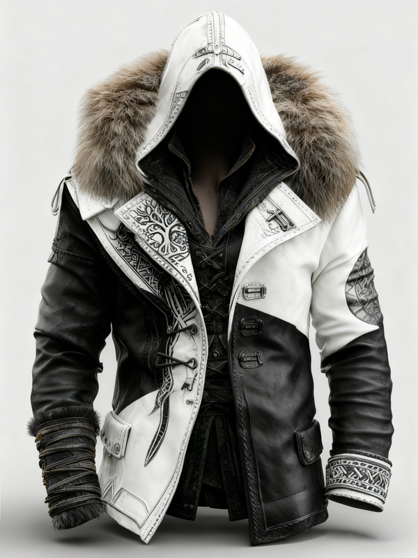 Men's Winter Fashionable Viking Contrast Color Faux Fur Coat 7173$46.89 USD$74.82 USD