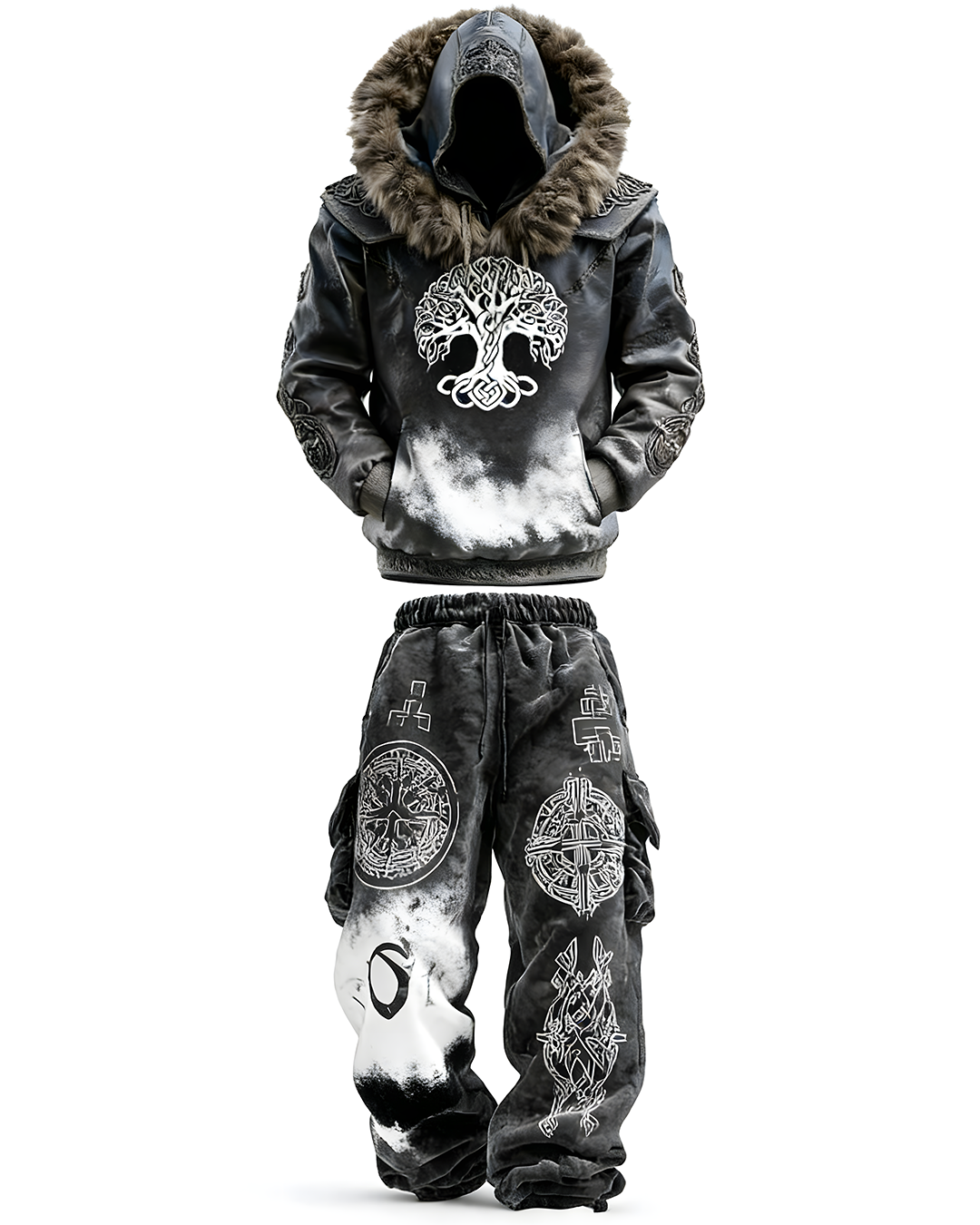 Men's Winter Warmth Gradient Tree of Life Faux Fur Hoodie and Pants Two-Piece Set 9035$53.99 USD$92.99 USD