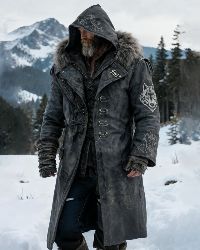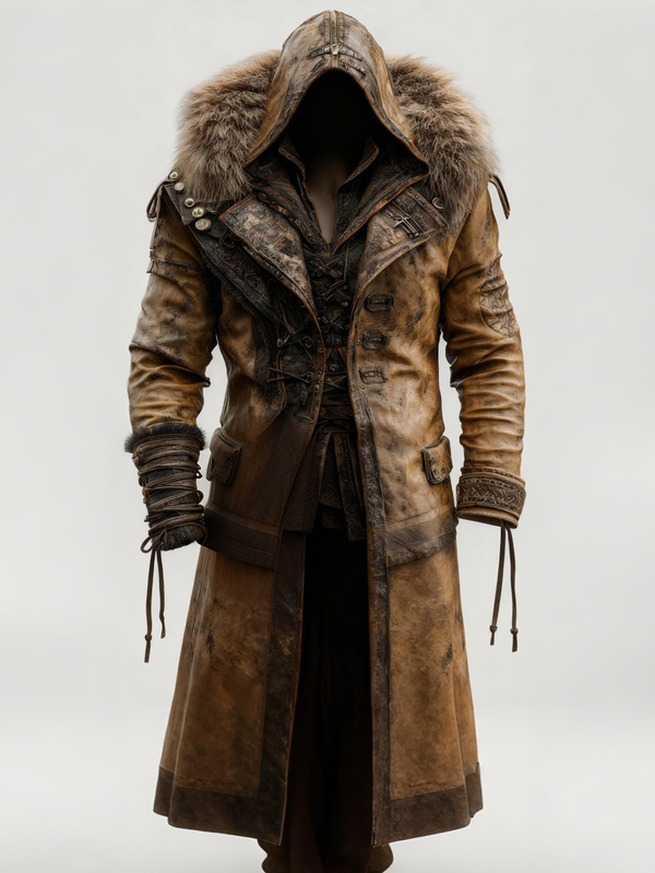 Men's Autumn And Winter Vintage Thick Warm Viking Leather Coat 4829$49.99 USD$89.88 USD
