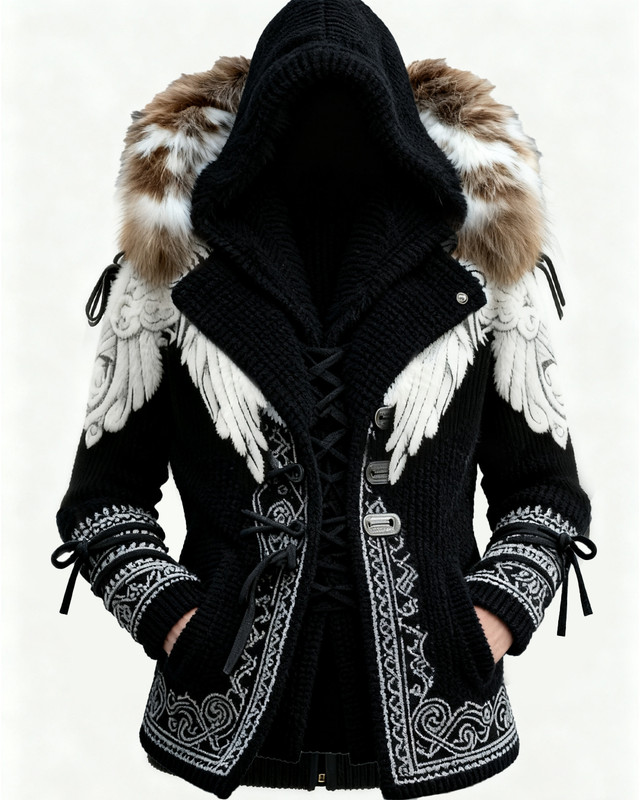 Men's Winter Fashion Nordic Viking Wings 3D Embroidered Knitted Hooded Jacket 9403$42.99 USD$83.32 USD
