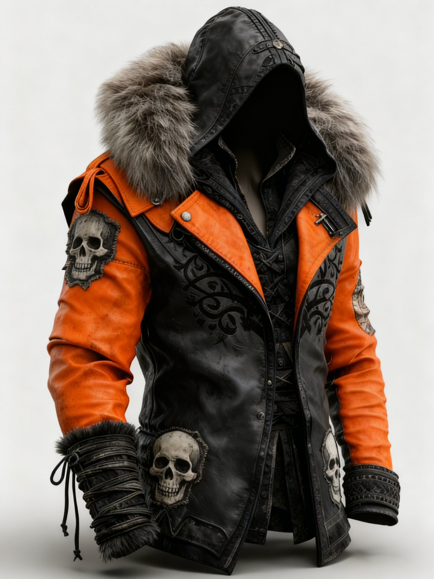 New Autumn/Winter Collection Men's Fashion Gothic Style Color-Blocked Patchwork Leather Jacket 2621