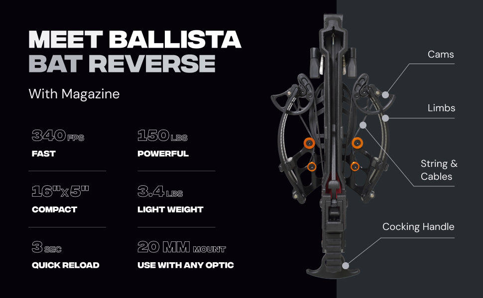 Loading a crossbow has never been easier! The Ballista BAT Reverse features a revolutionary quick-load system, making reloading fast, effortless, and silent��a game-changer for hunters and sport shooters alike.