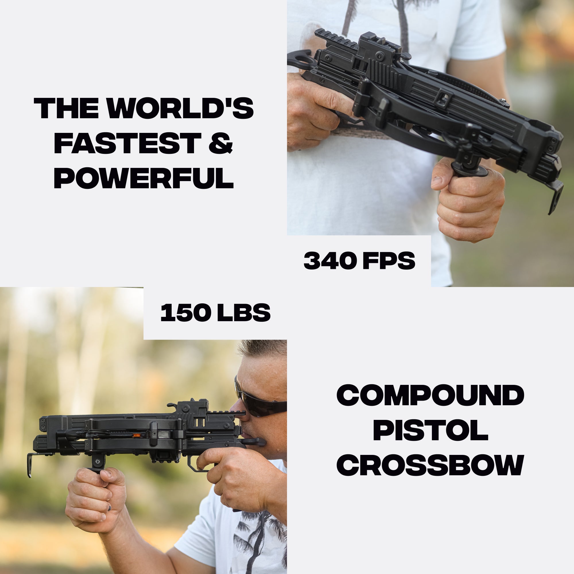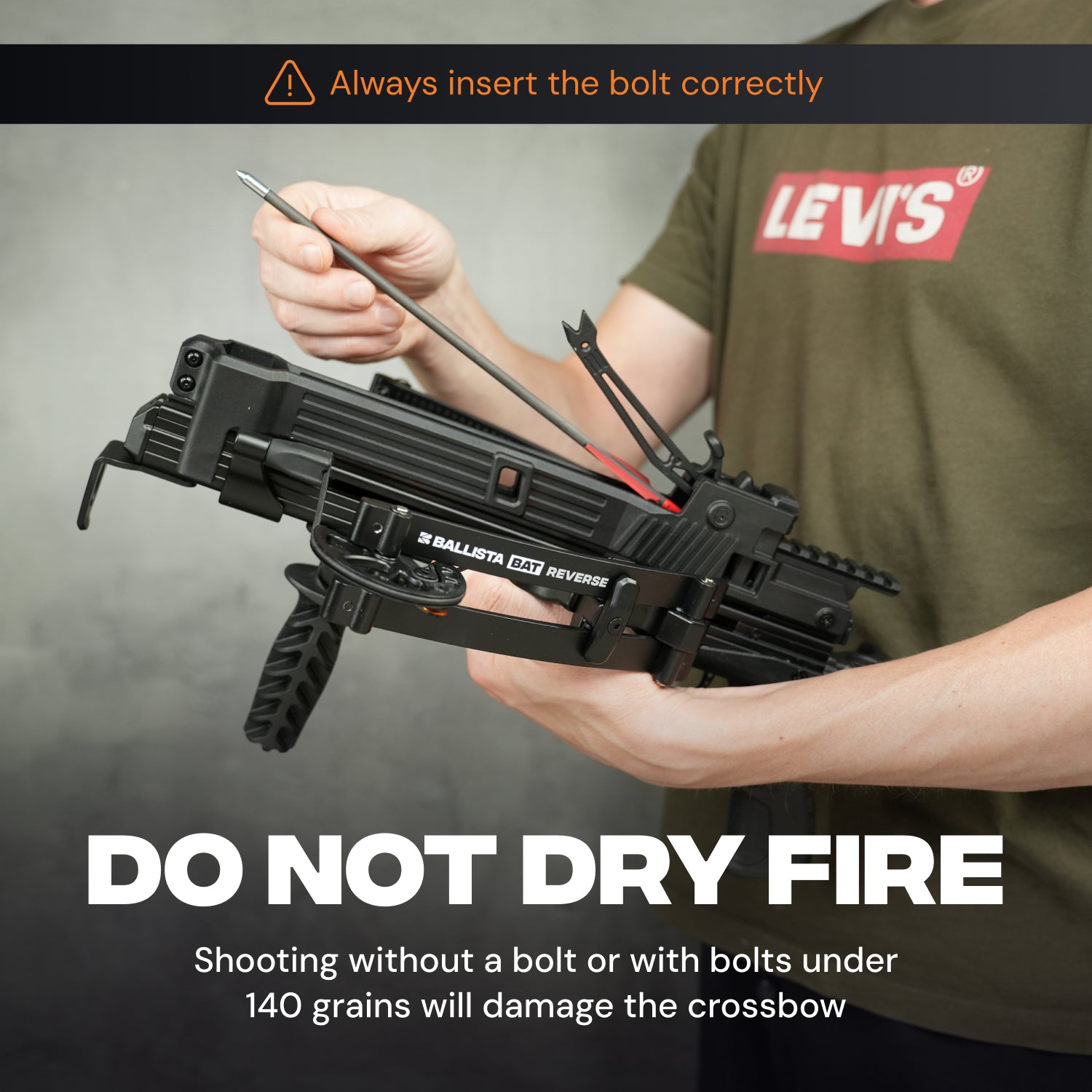 Equipped with 150 lbs limbs as standard, the Ballista BAT Reverse is the most powerful compound pistol crossbow. Its exceptional power makes it perfect for recreation, sports, and entertainment, as well as hunting and even self-defense.