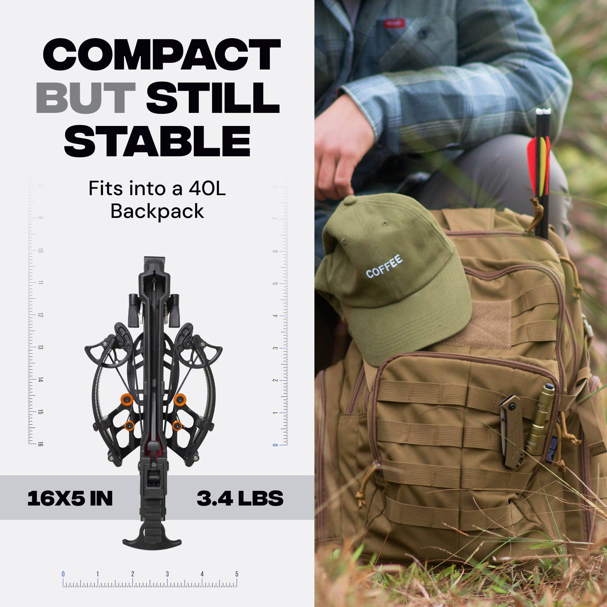 Unlike traditional crossbows, the Ballista BAT Reverse is ultra-compact and lightweight, easily fitting into a standard 30-liter backpack. No need for a special case��carry it discreetly without inconvenience.