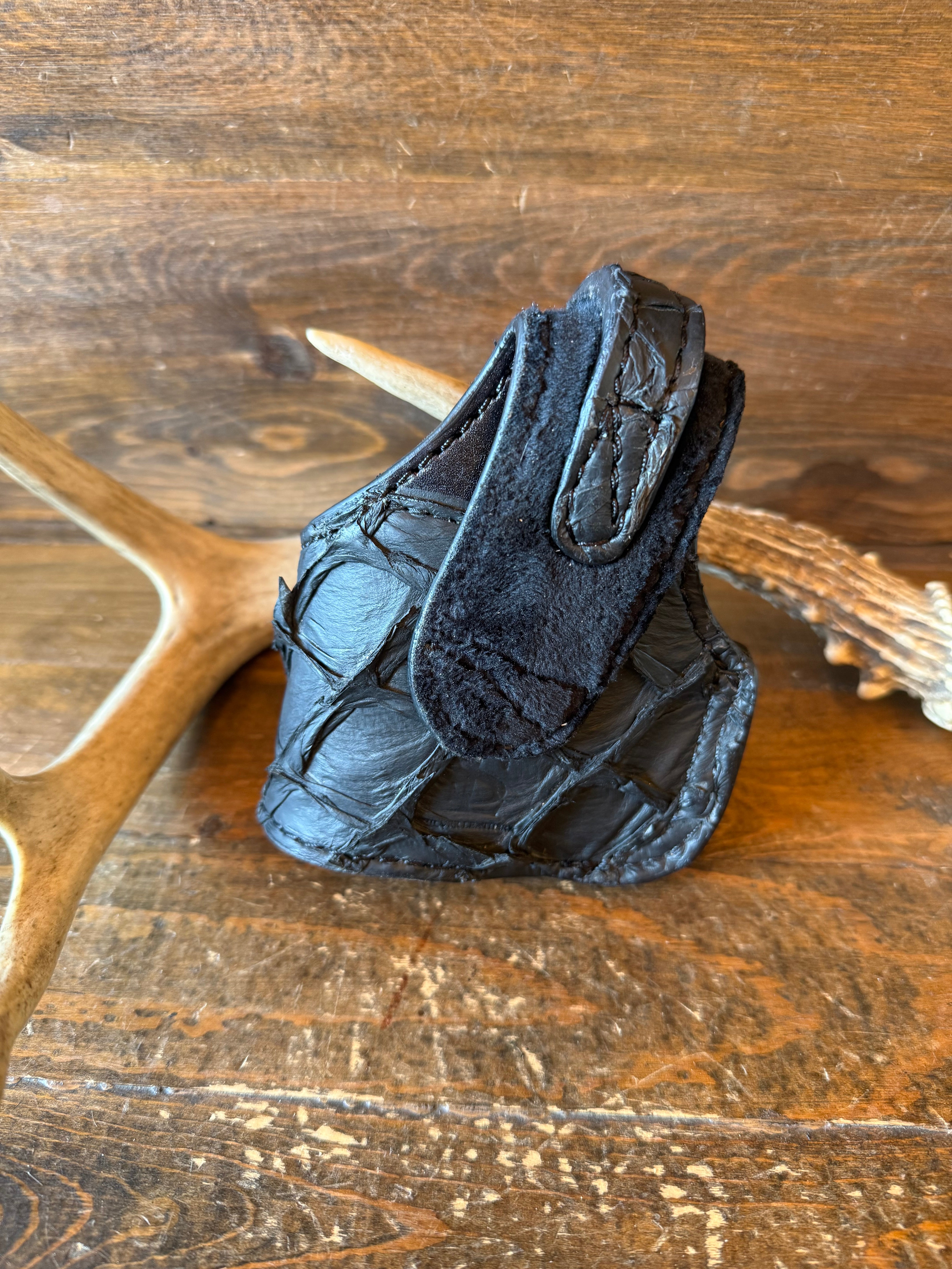 # H-363 Black matte Pirarucu fish skin compact holsters. Black color snap. Fits most of Glock models. Soft velvet interior to prevent scratching. More colors available by order.