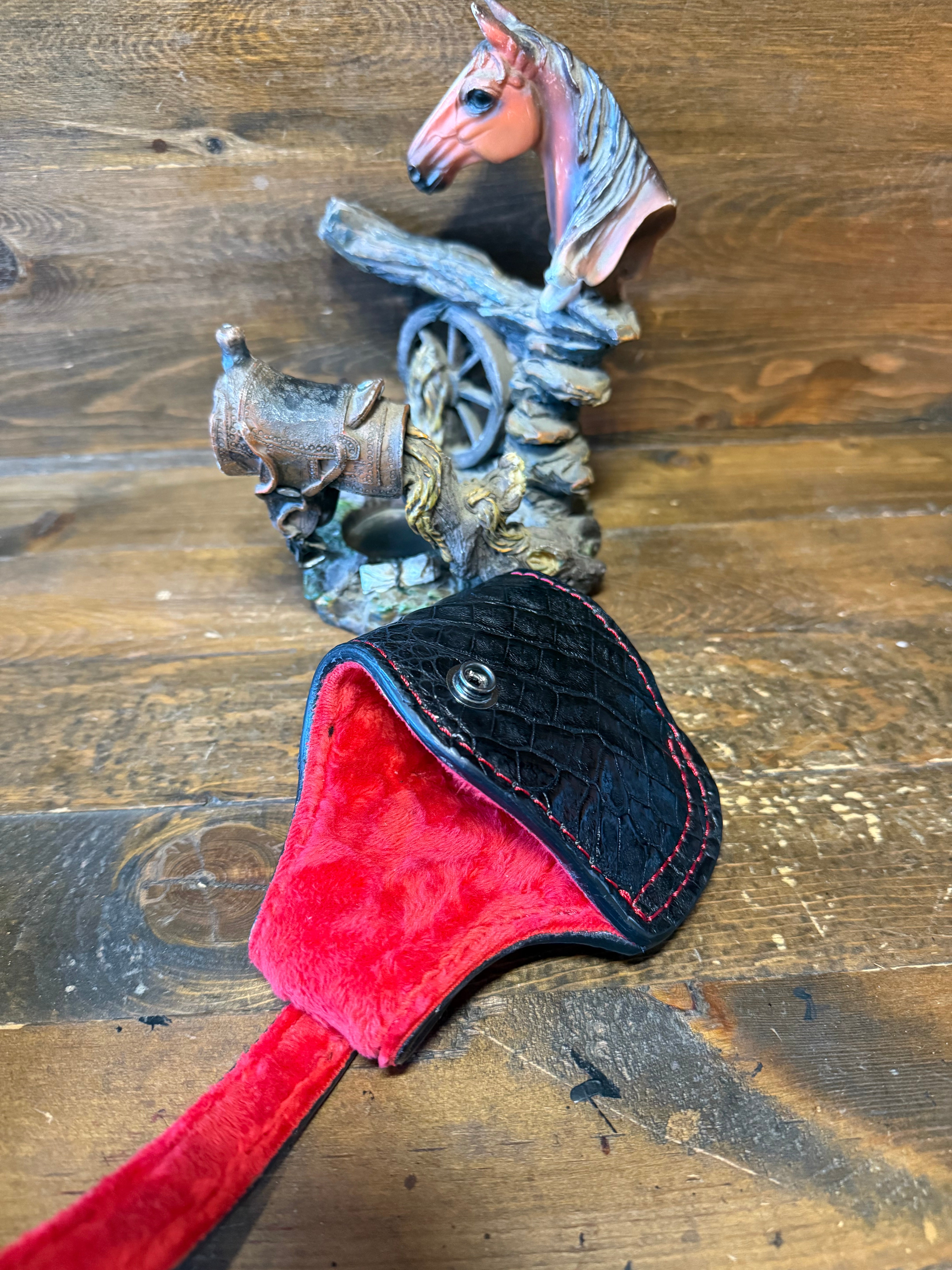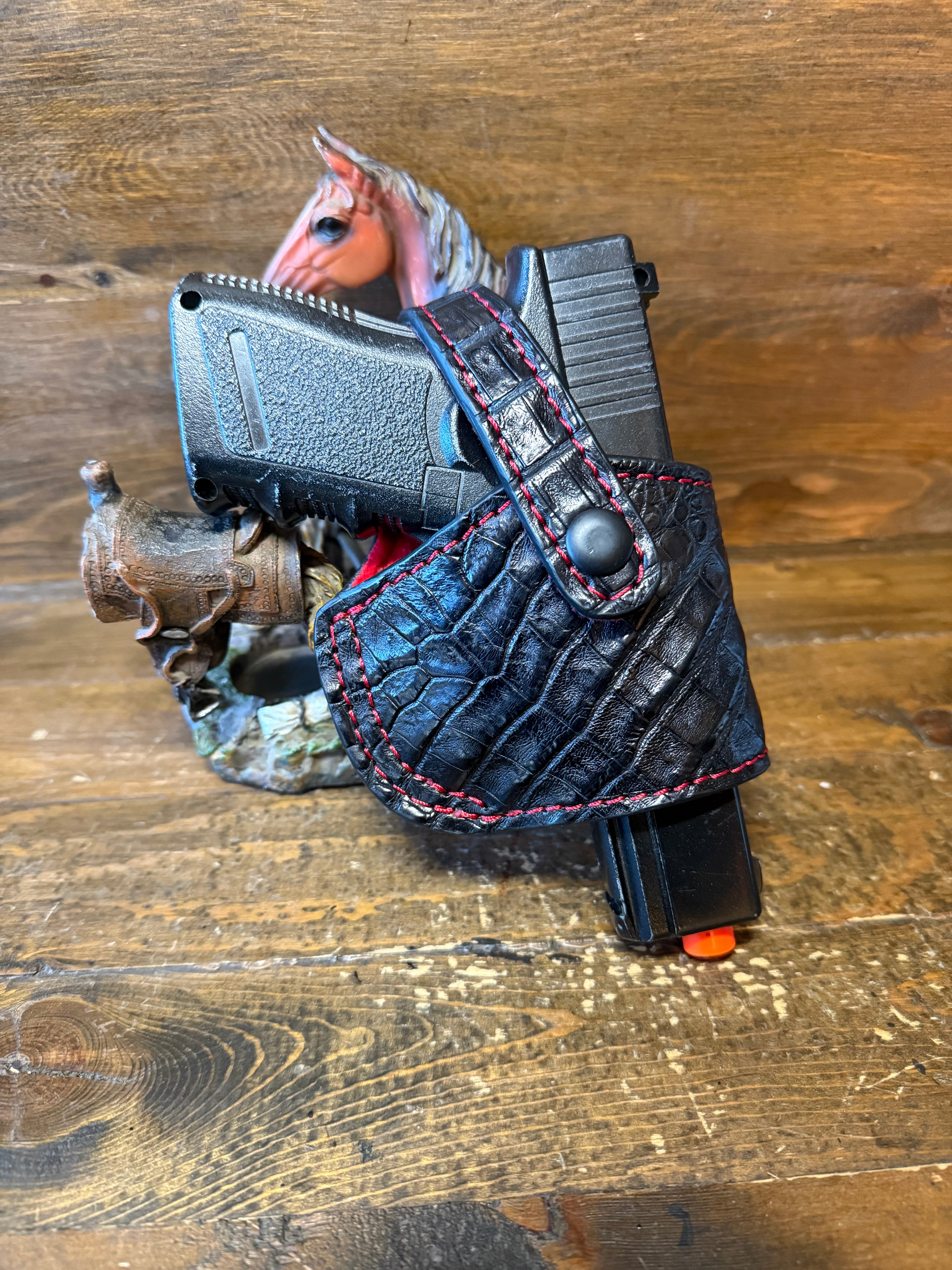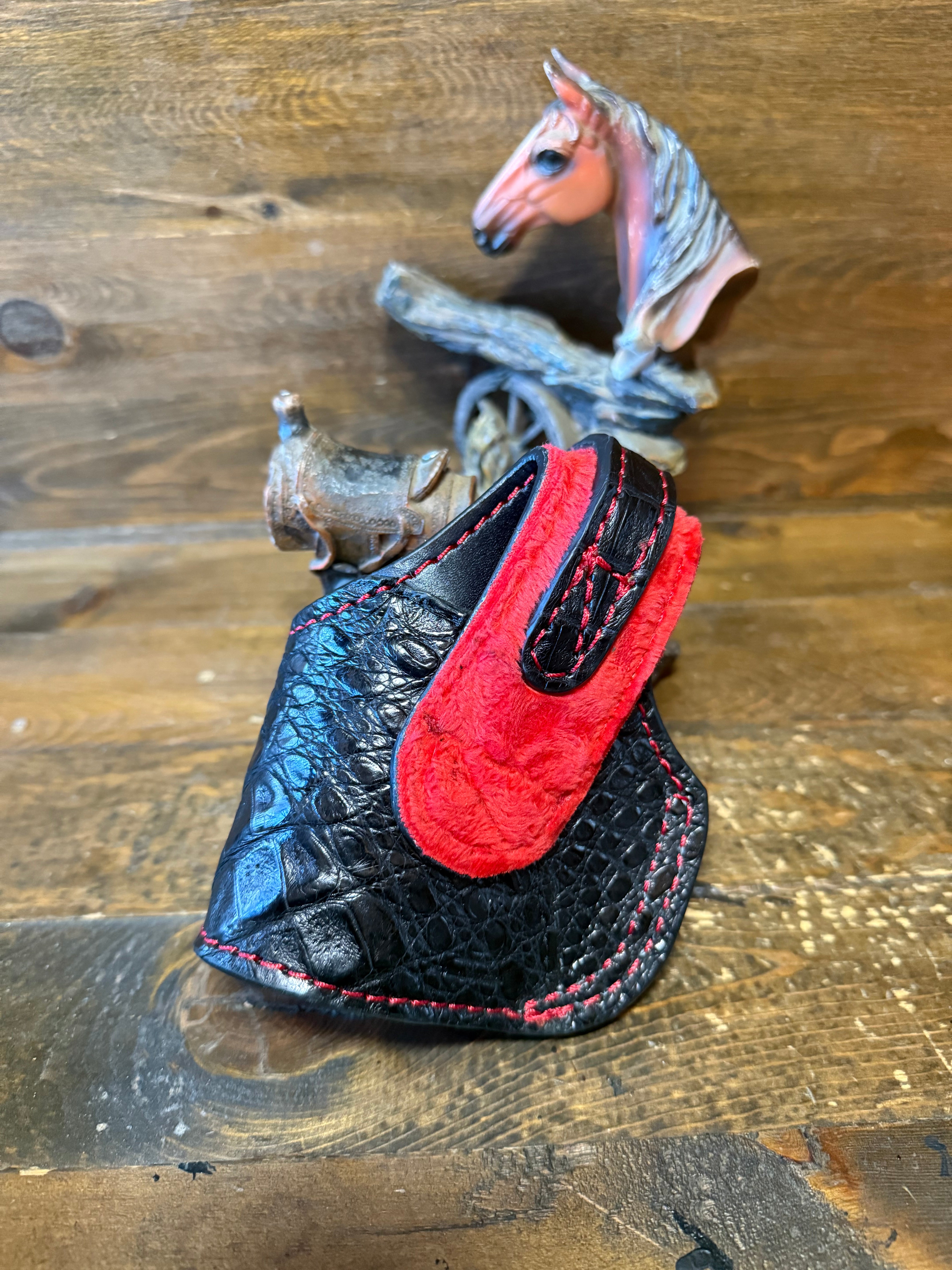# H-351. Black/red crocodile/caiman skin luxury compact holster. Fits most of Glock models. Luxury Red velvet interior to prevent scratches. More colors available by order.