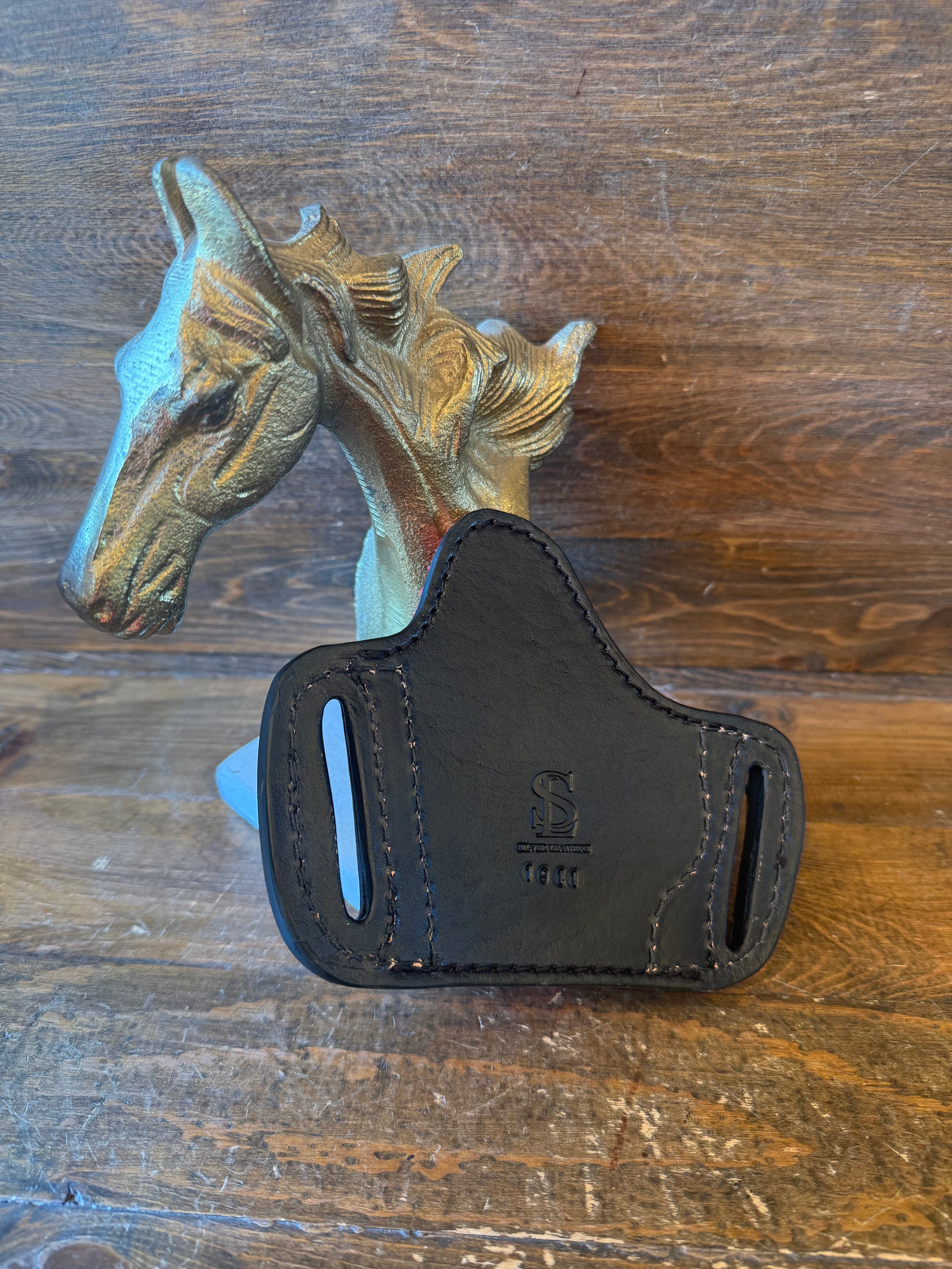 Funda bikini de piel de avestruz color negro para Porte externo . Para modelos del 1911. Interior de terciopelo color rojo para no rayar. Mas colores disponibles atraves de orden