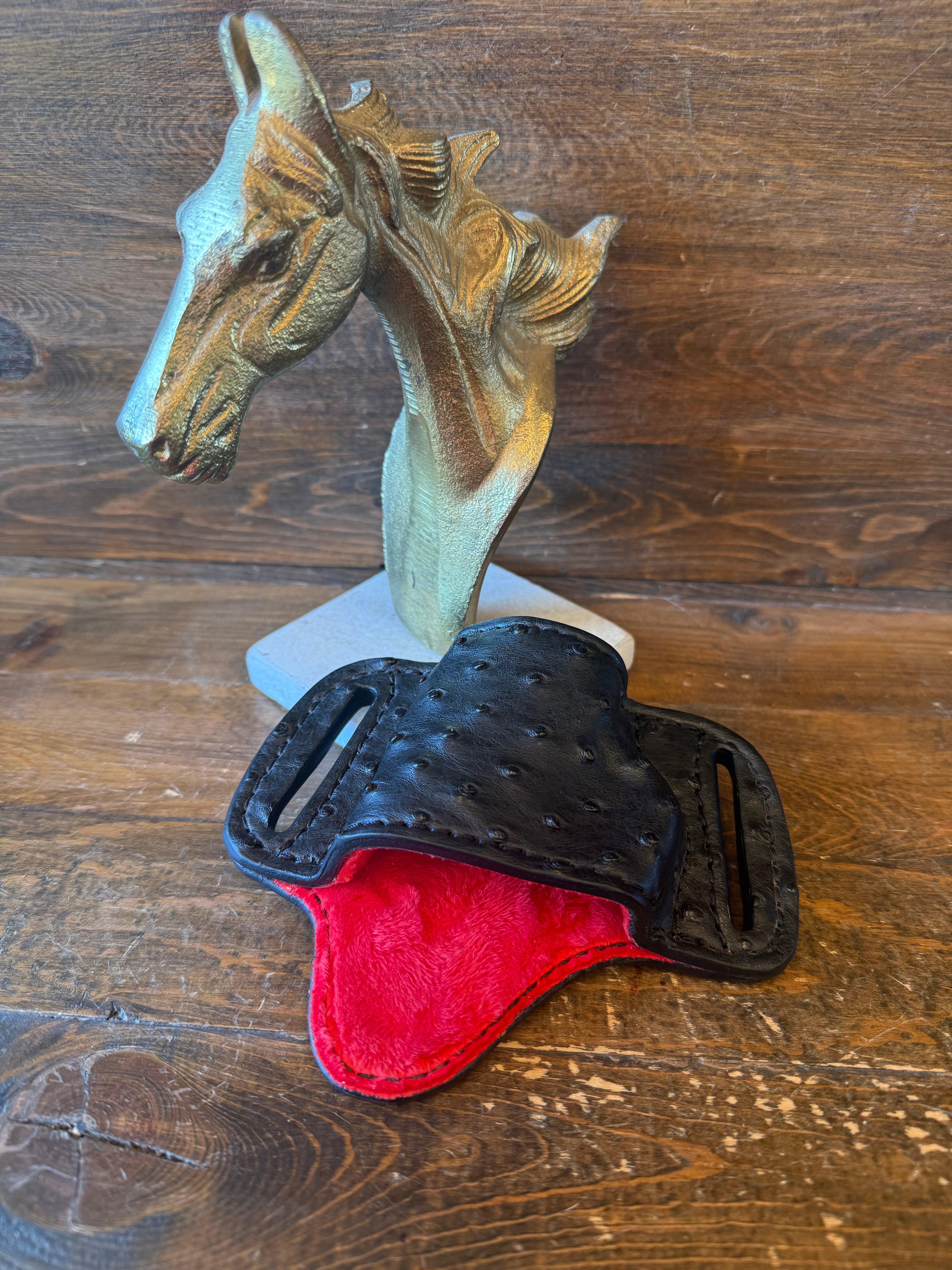 # H-325-2. Black/red ostrich skin bikini Owb holster. Fits most of 1911 models. Red luxury velvet interior to prevent scratches. More colors available by order.