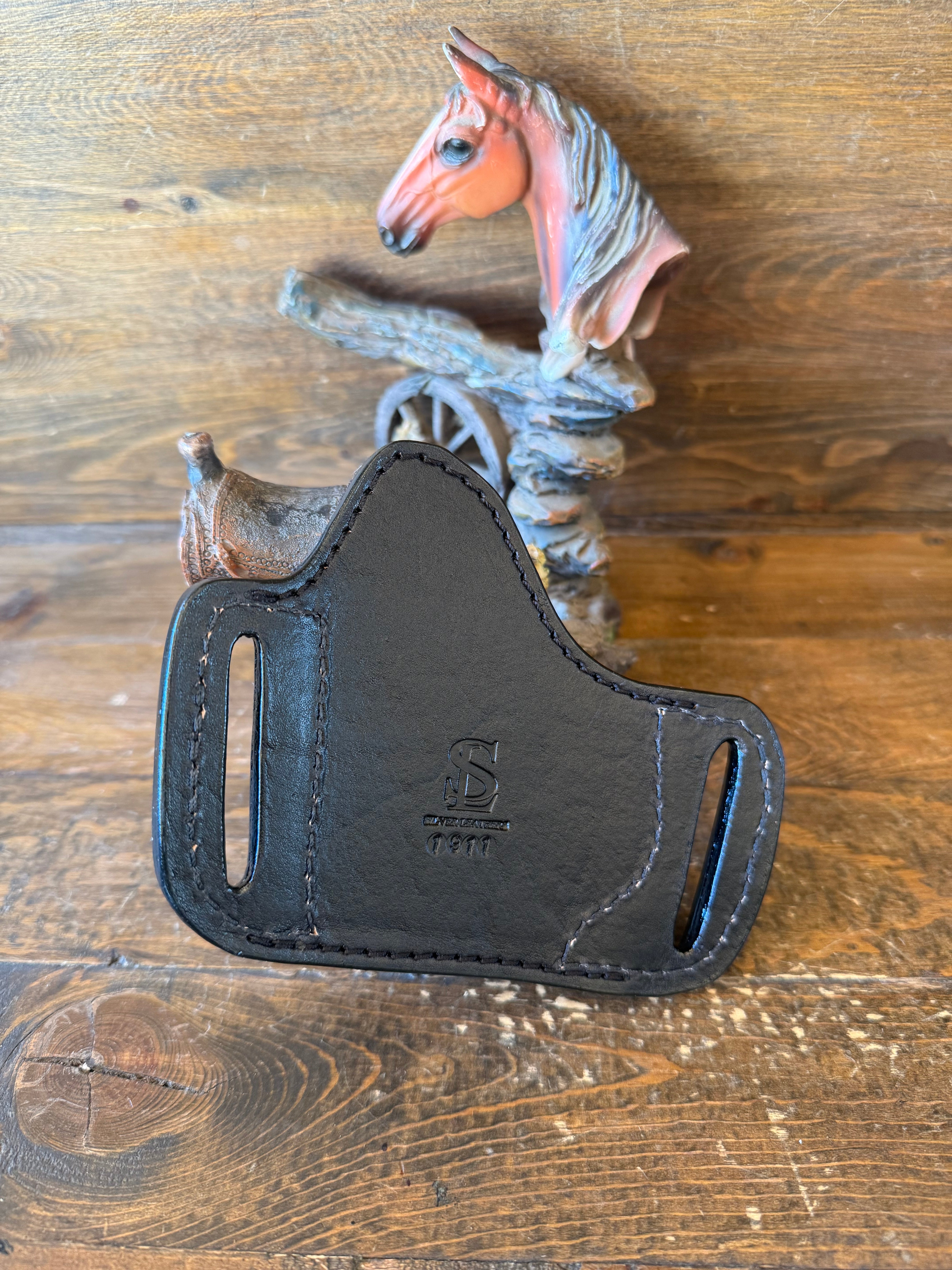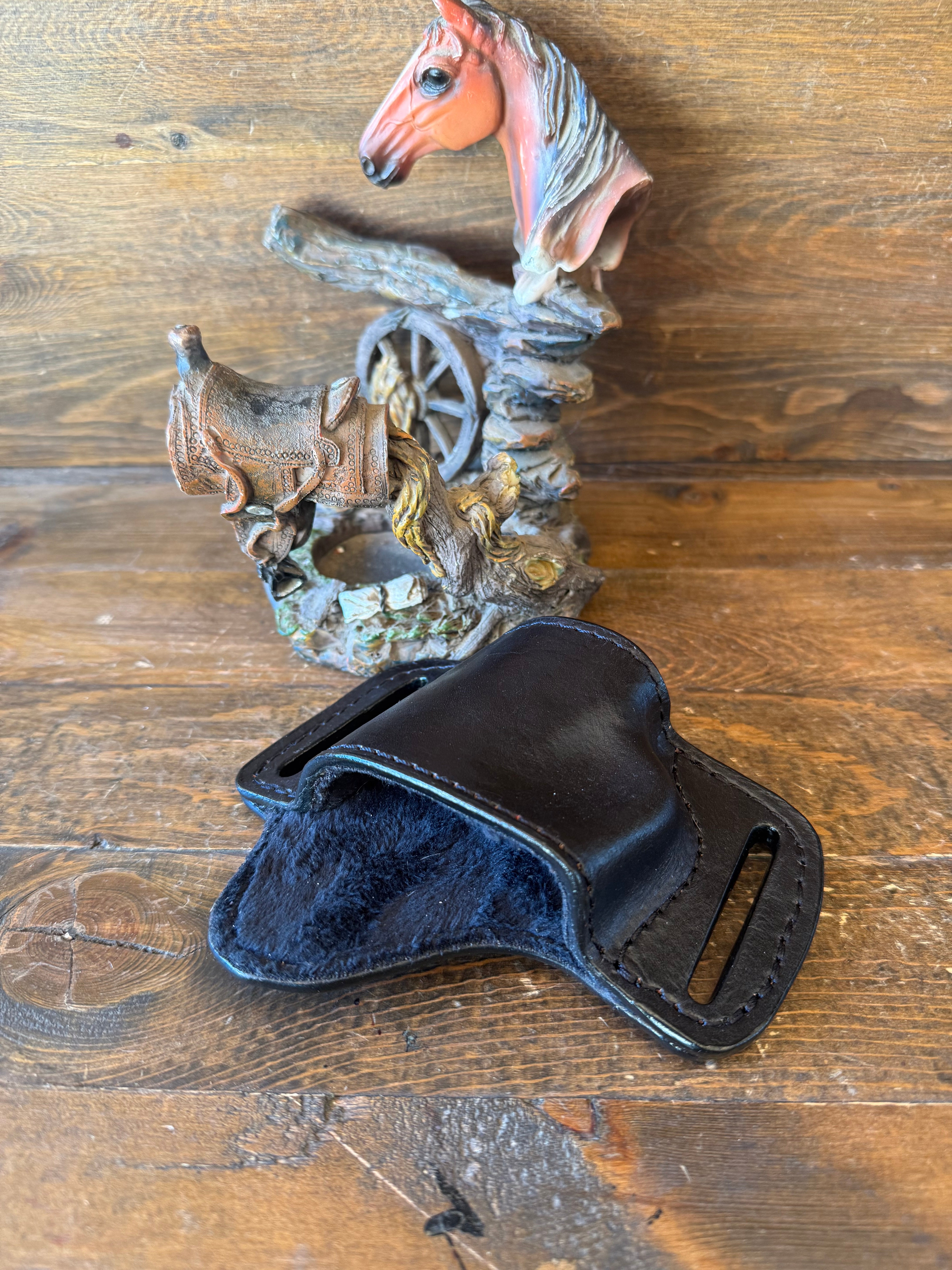 Funda bikini de piel de vaqueta color negro para Porte externo . Para modelos del 1911. Interior de terciopelo para no rayar. Mas colores disponibles atraves de orden