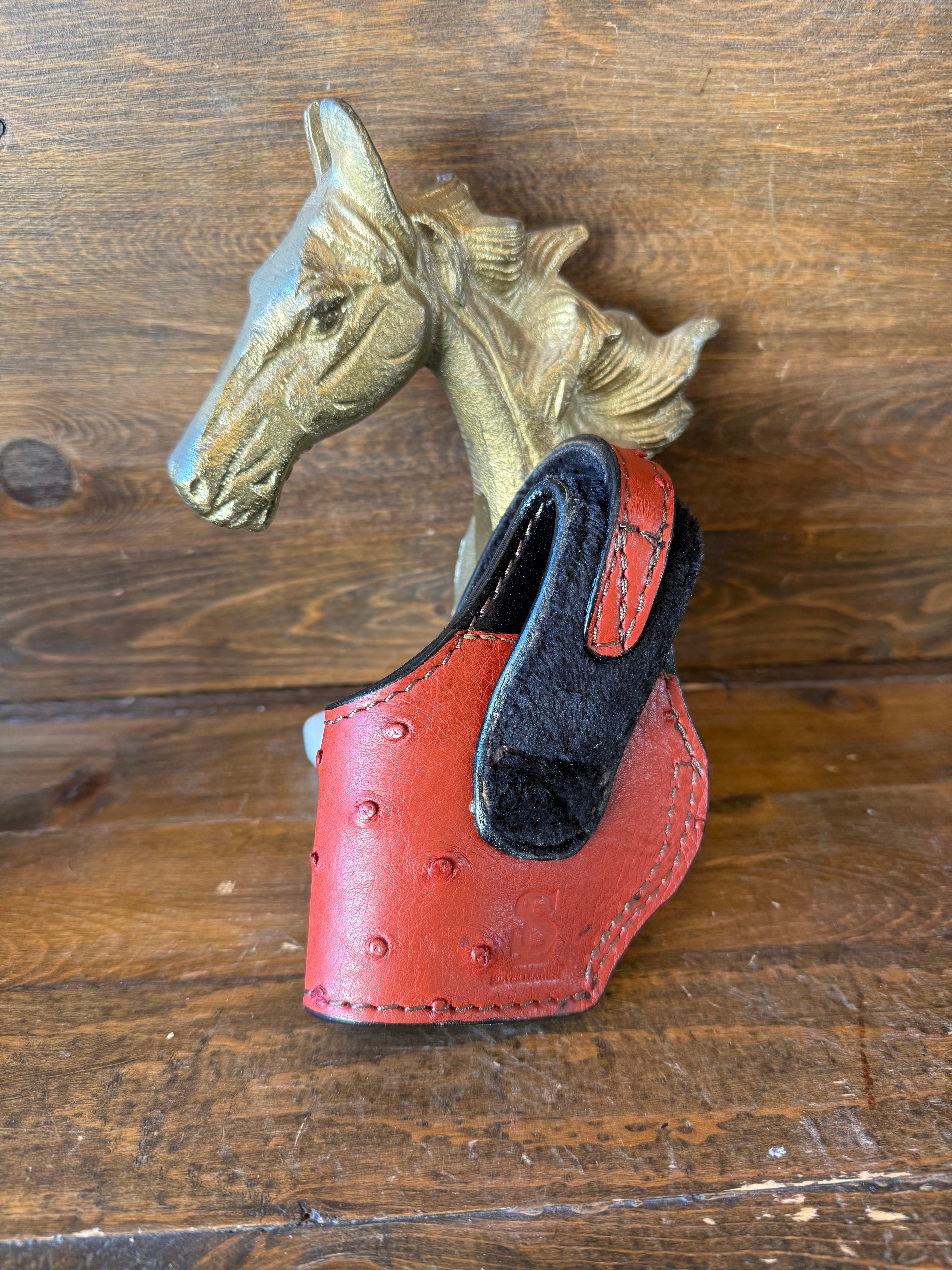 # H-342 Burgundy Ostrich skin color luxury compact holster. Fits most of 1911 models. Luxury velvet interior to prevent scratches. More colors available by order.