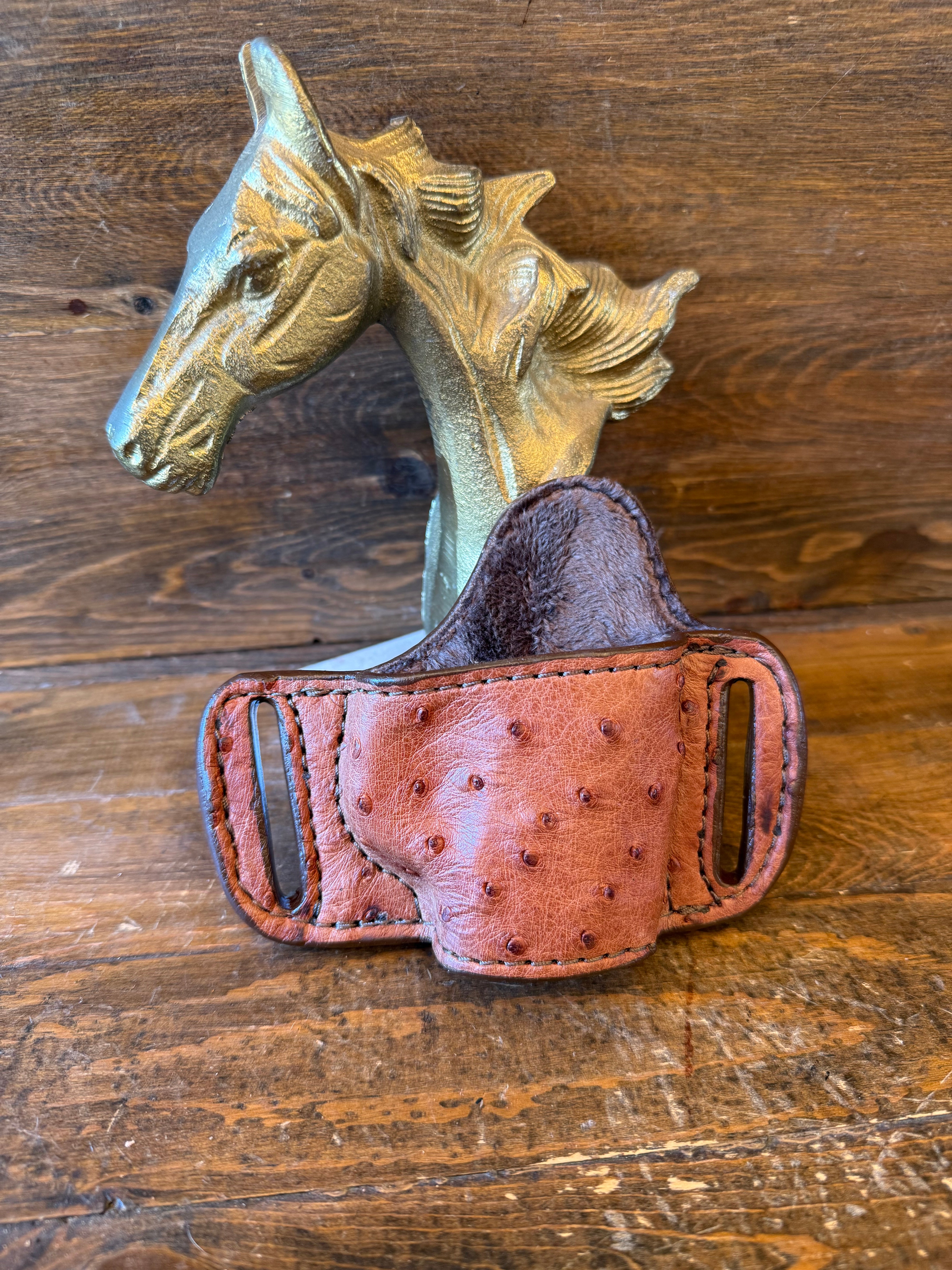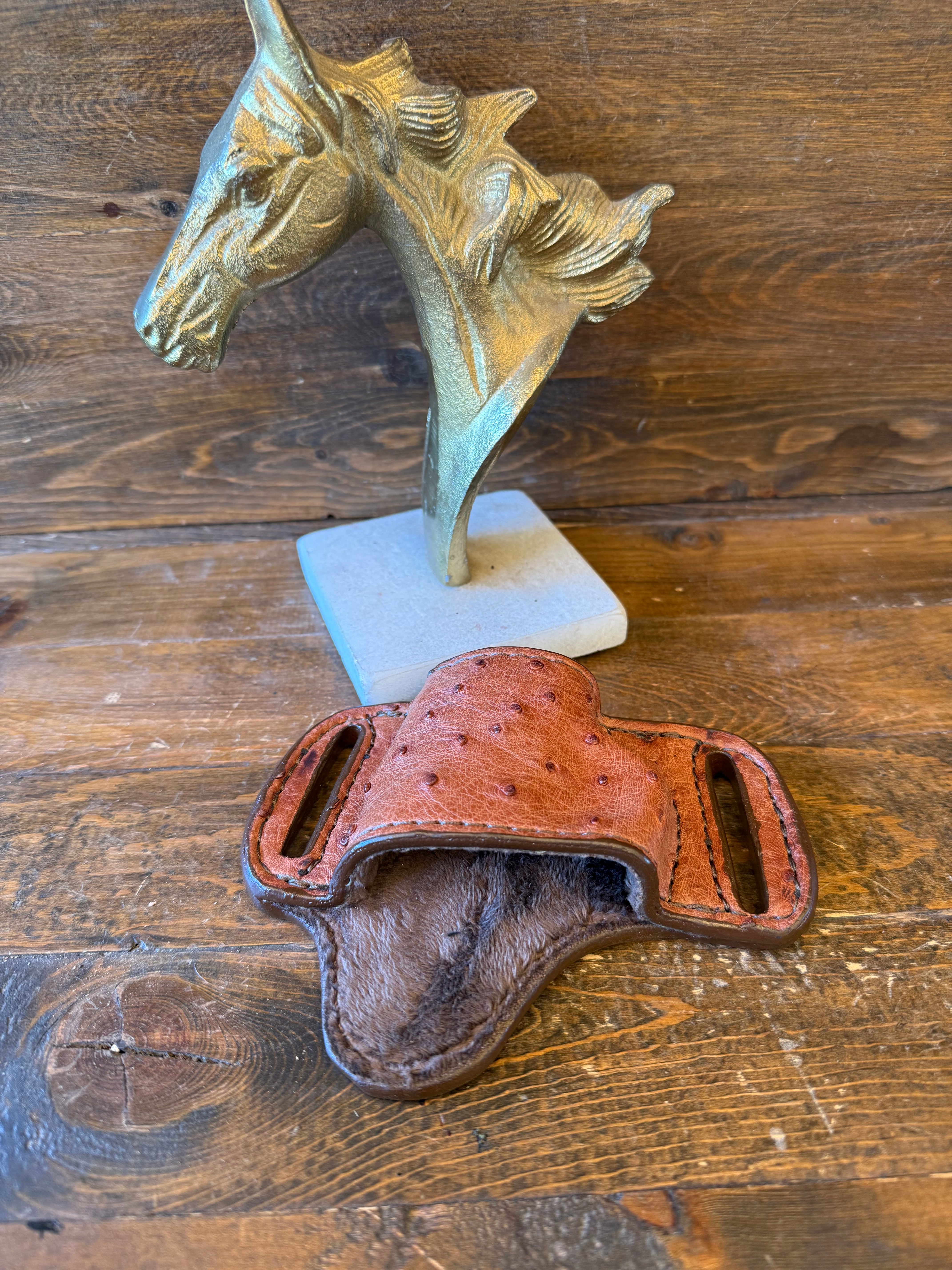 # H-346 Gerbera color ostrich skin bikini Owb holster. Fits most of 1911 models. Soft velvet interior to prevent scratches. More colors available by order.