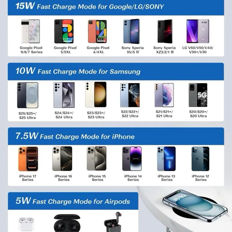 7.5W Fast Charging: iPhone 12–17 series