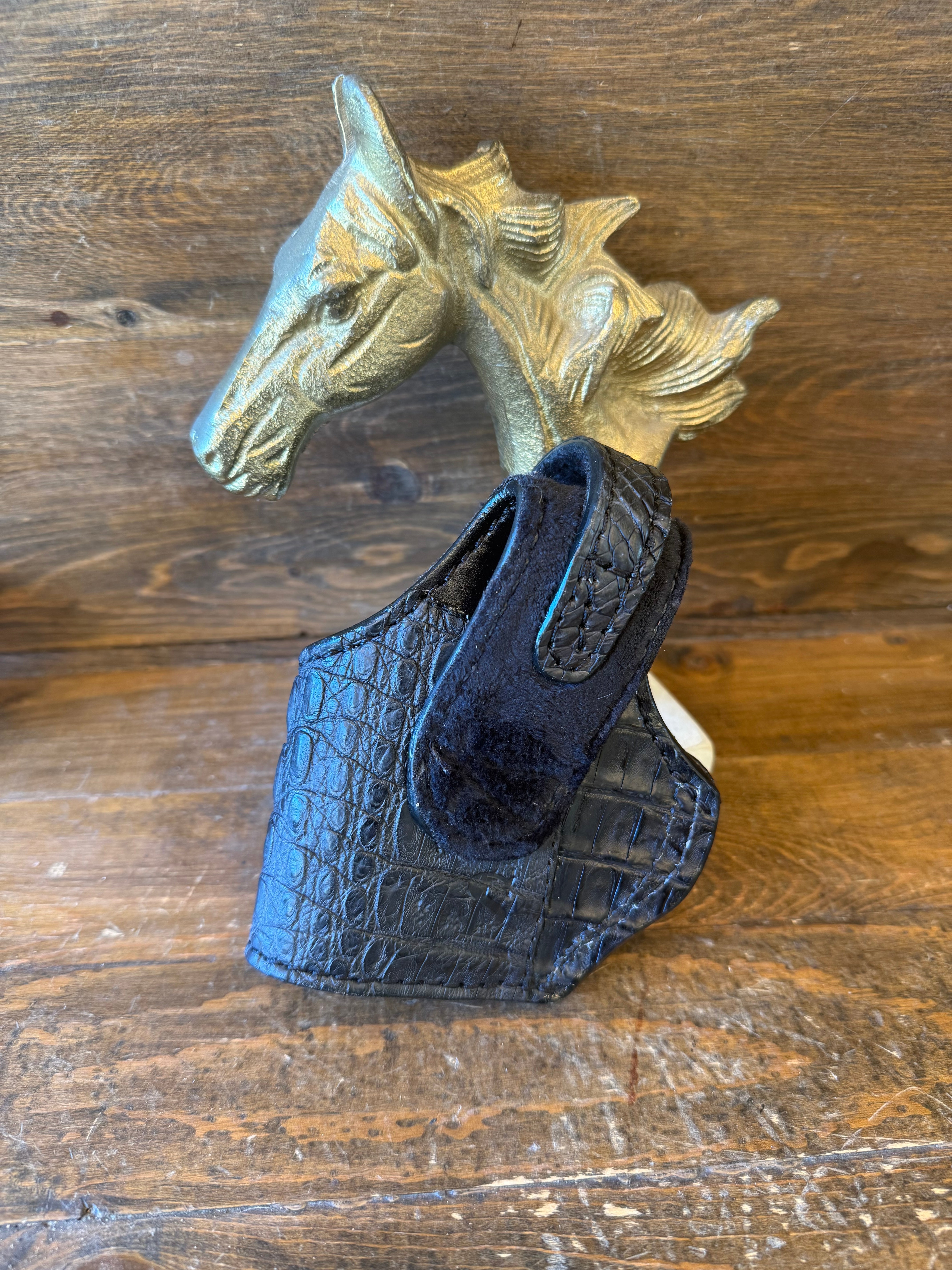 # H-348. Matte black Hornback crocodile/caiman Compact holster for Beretta models. More colors Available. Soft valvet interior to prevent scratches.