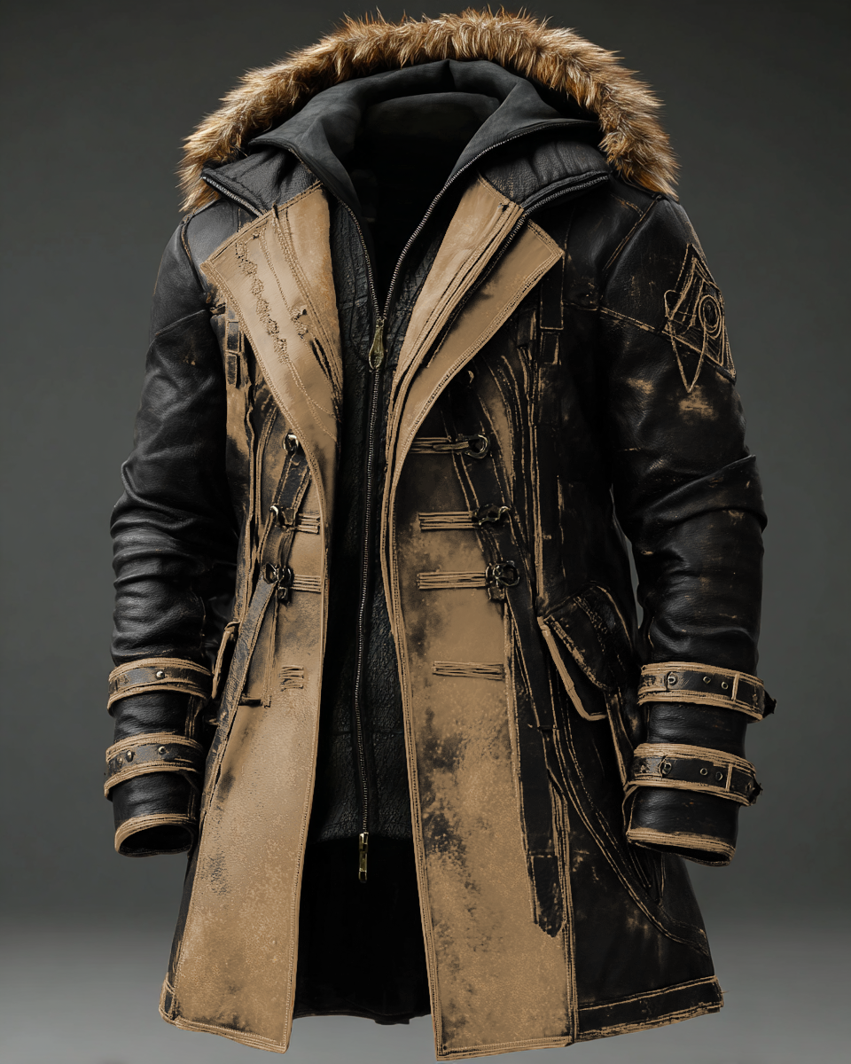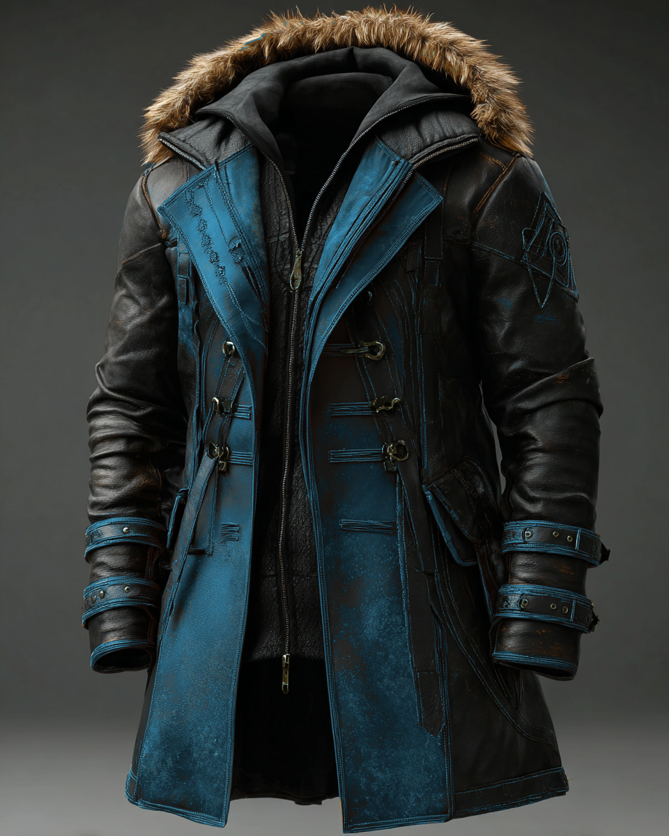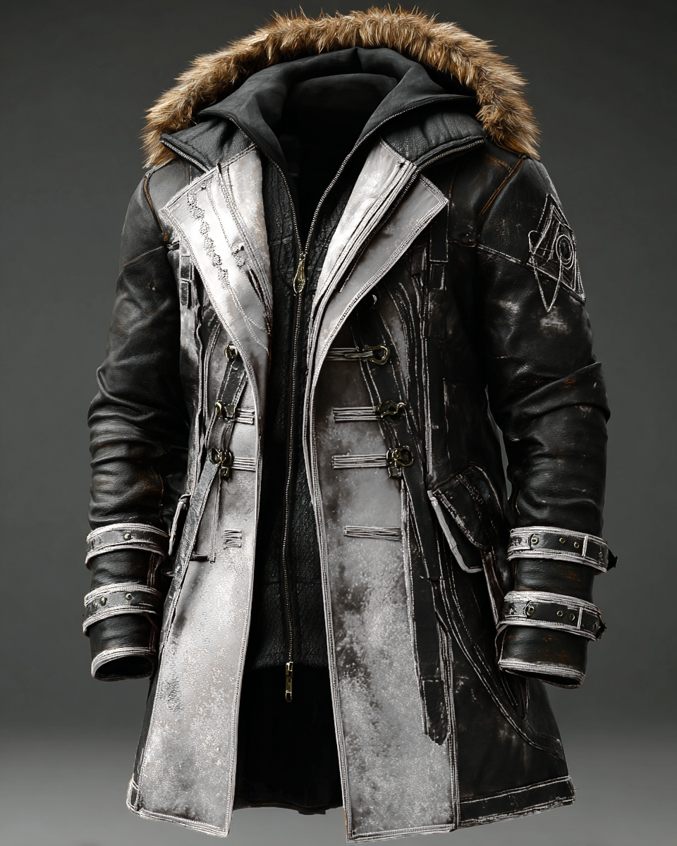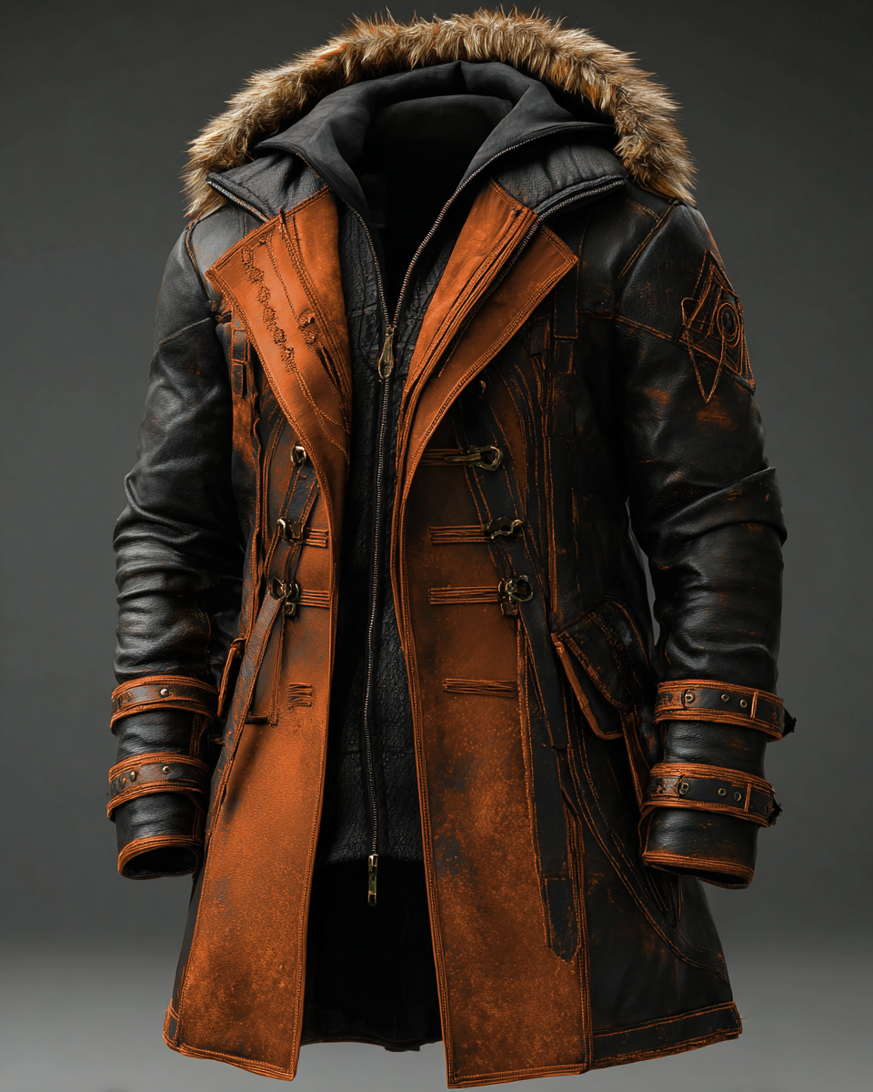 Men's Western Autumn and Winter Punk Contrast Leather Jacket 8529