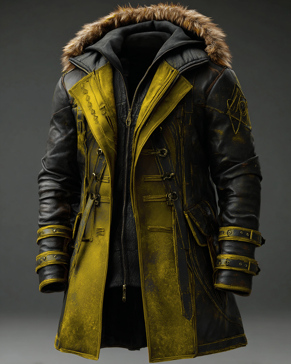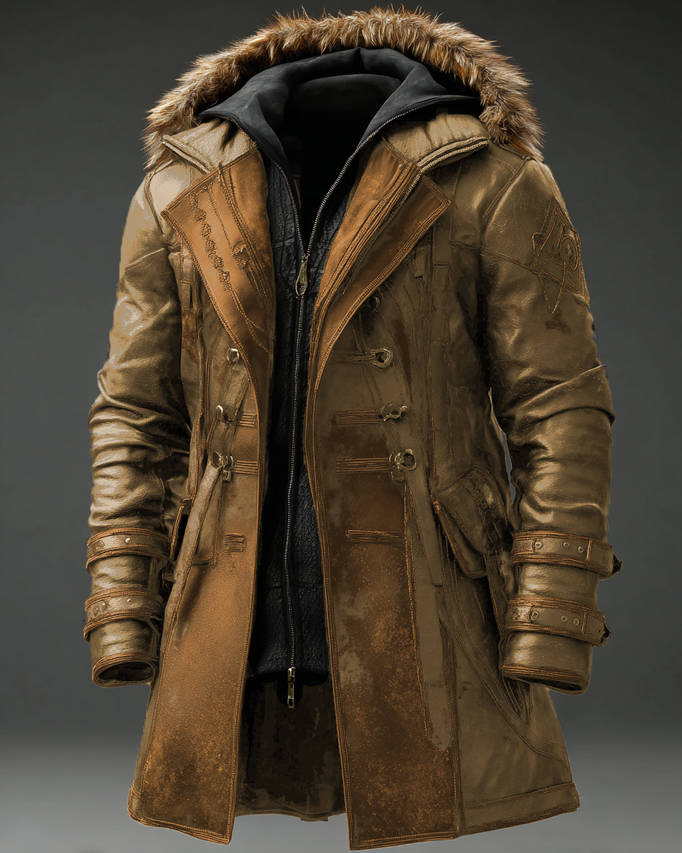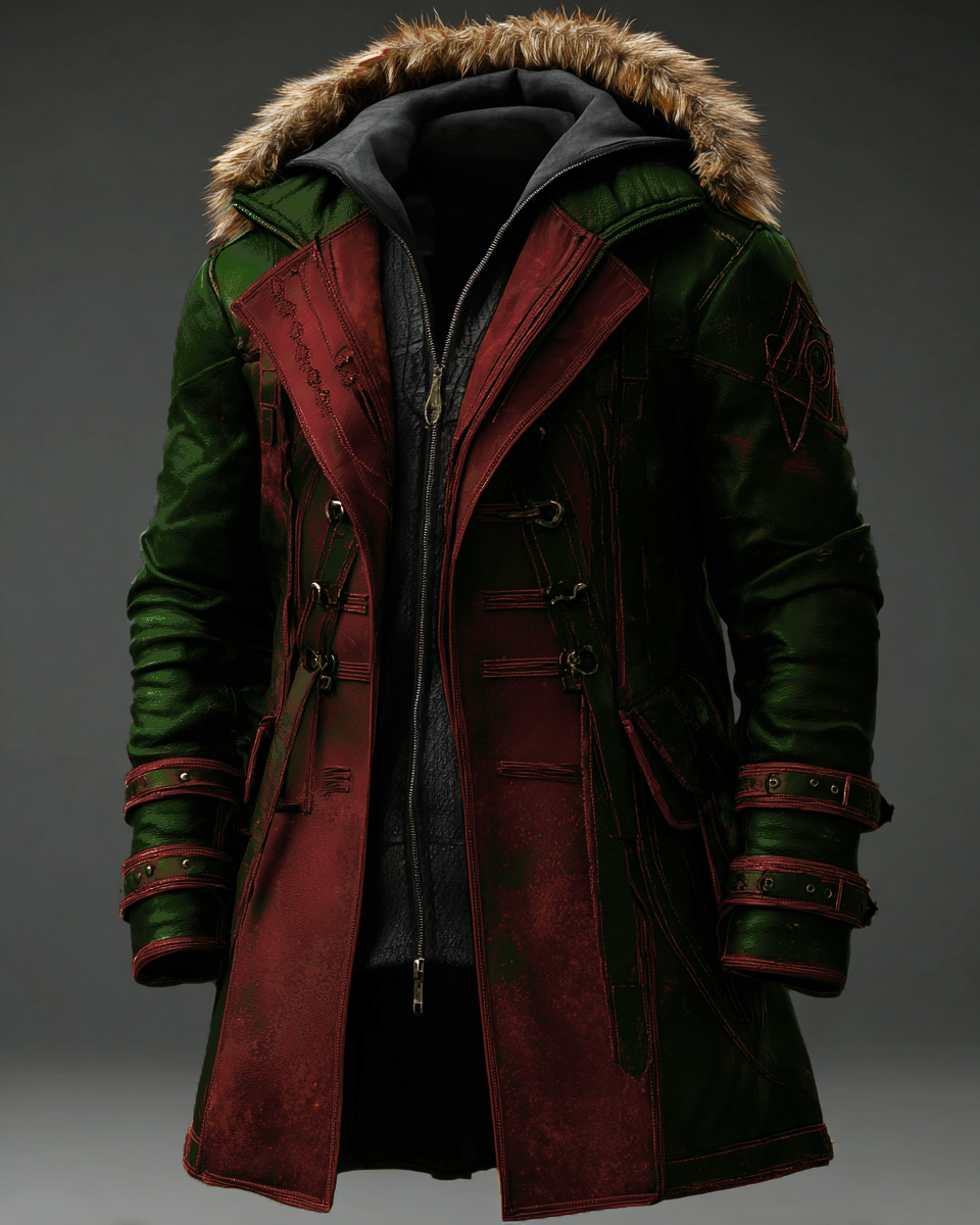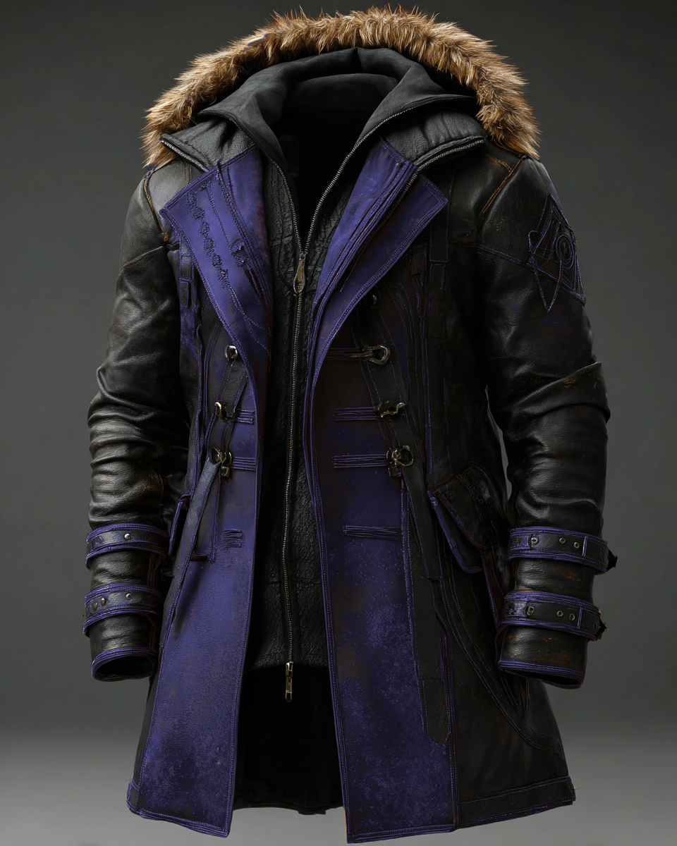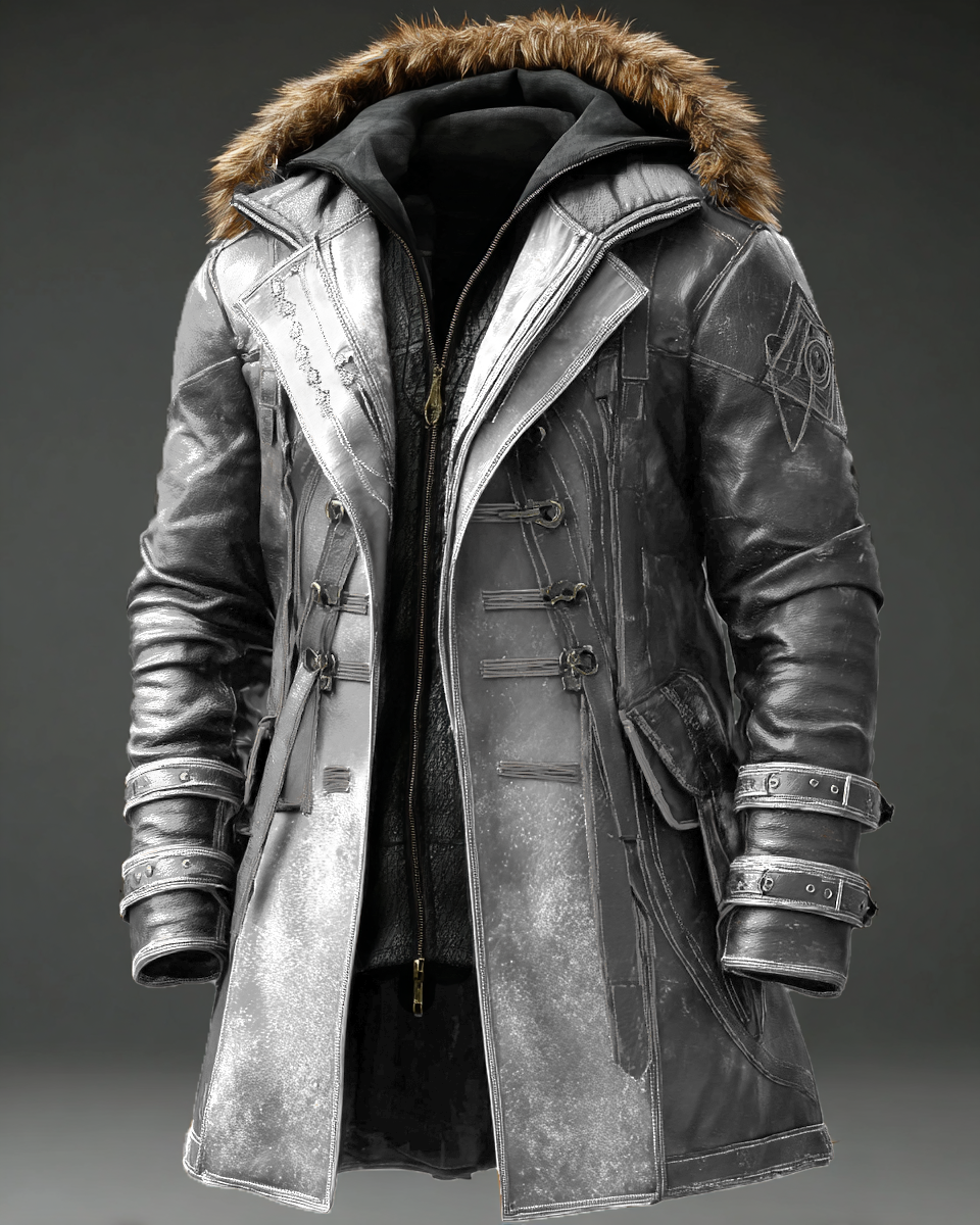Men's Western Autumn and Winter Punk Contrast Leather Jacket 8529