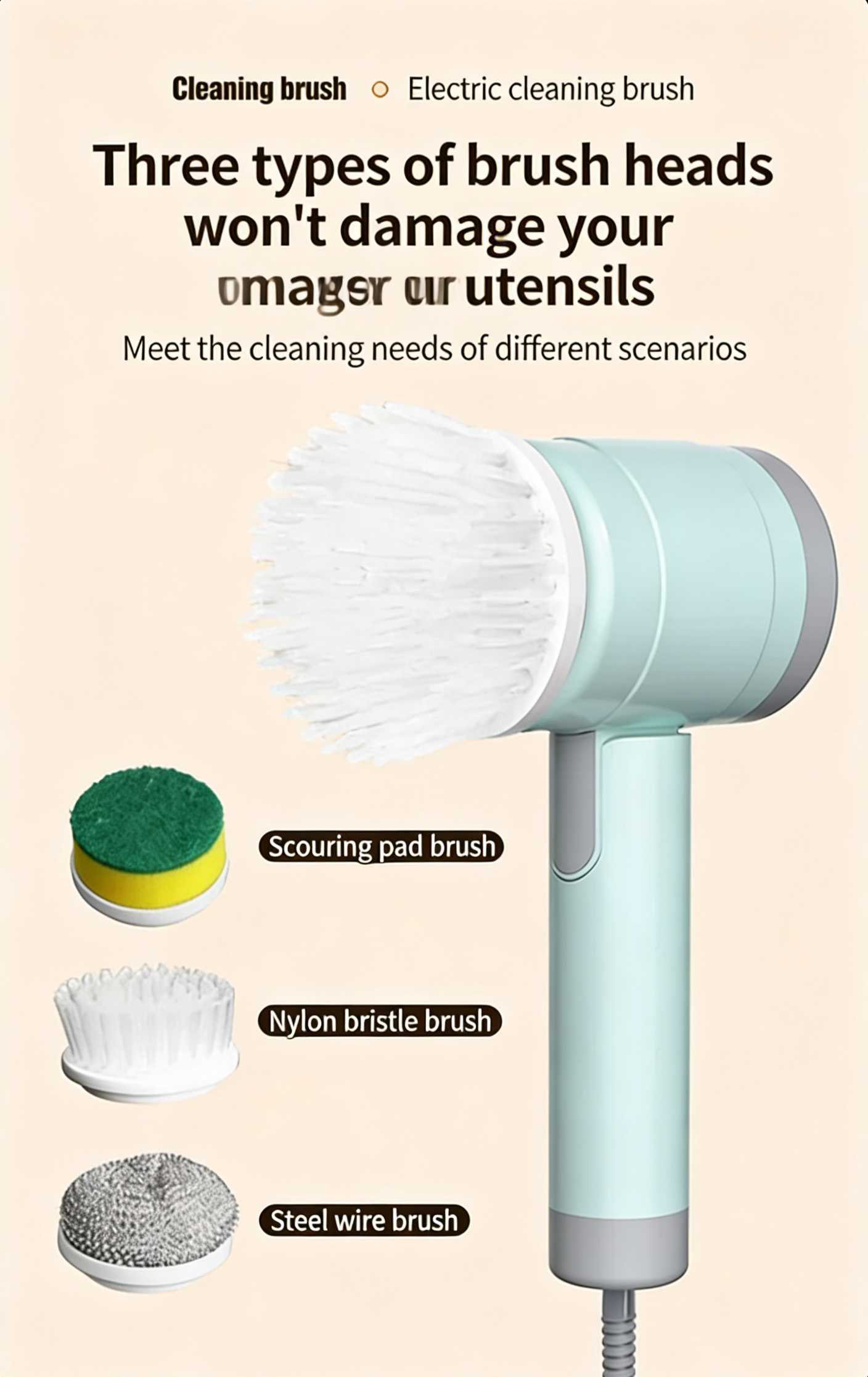 Home Use: From glass windows to kitchen surfaces, the brush is designed to clean various surfaces without damaging them.