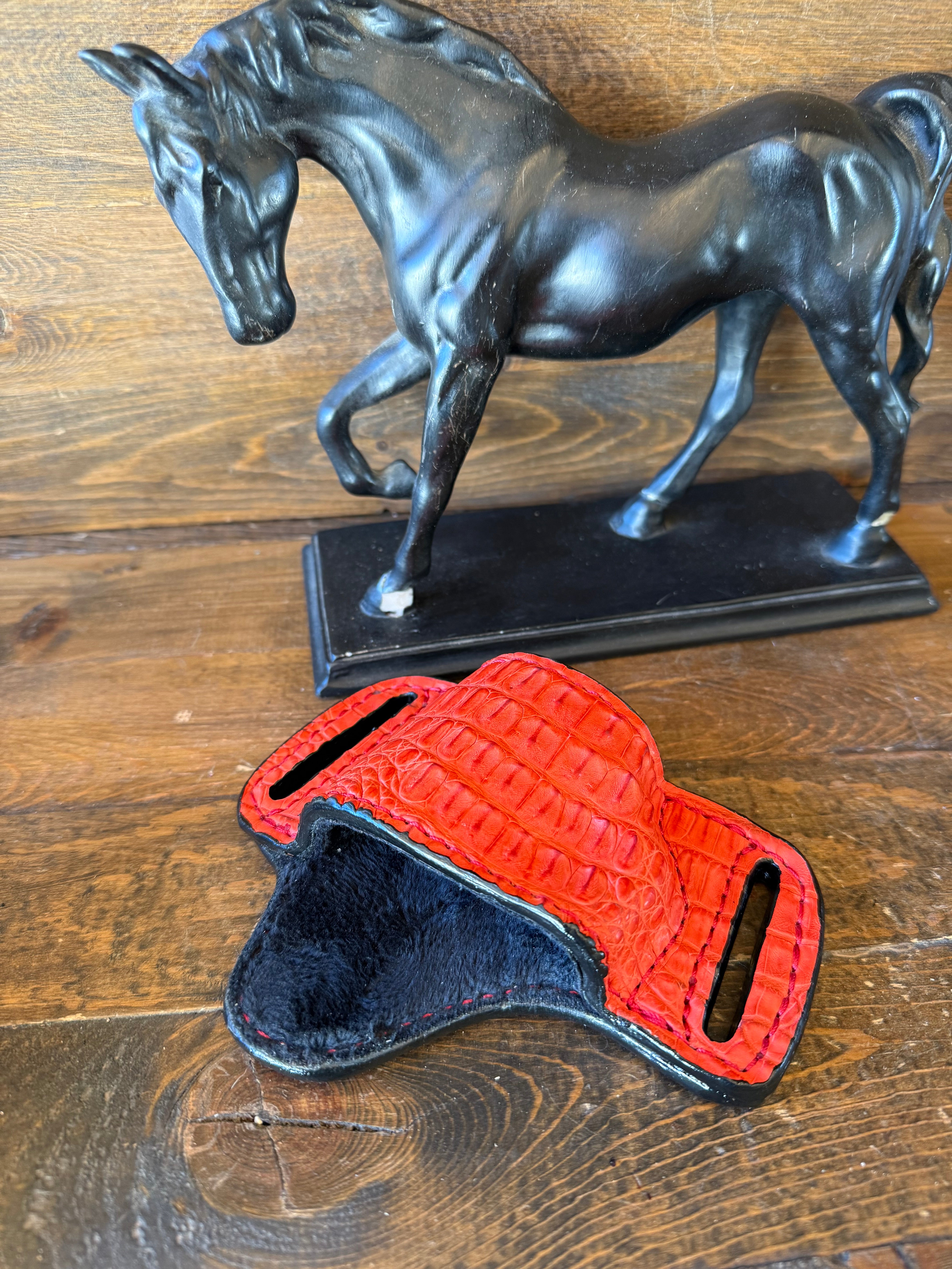# H-344 Red crocodile/caiman Hornback skin bikini Owb holster. Fits most of 1911 models. Soft velvet interior to prevent scratches. More colors available by order.